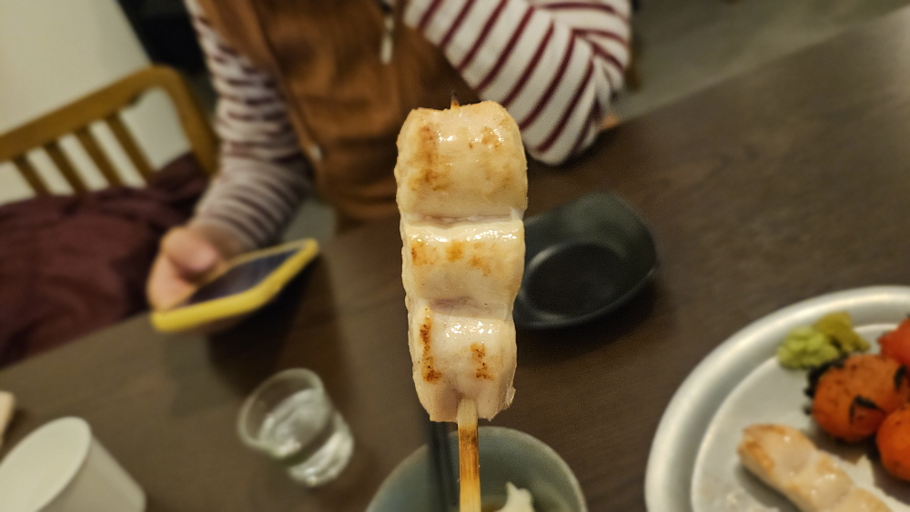 걸쭉한 토마소 패이스트 소스가 국물에 녹아 든 스프 비슷한 식감의 라면이었다. 분명 토마토 향은 물씬 나는데 맛은 또 맵기도 하다. 이런 언발런스의 조화는 무엇이라 표현해야 할지 모르겠다. 퓨전 같으면서 정통 같은 아무 오묘한 맛이었다. 물론 나쁜 것은 절대 아니다. 소주 안주로는 꼬치보다 오히려 라면이 더 좋은 것 같았다. 사실 꼬치구이로 저녁밥을 대체하기는 어렵다. 양이 너무 적기 때문이다. 특히 성인 남자들의 경우 더욱 그렇다. 하지만 여긴 남자 손님들이 많았다. 혼술하는 손님도 있었다. 뭐랄까 그냥 편하고, 맛있다. 가격이 아주 저렴한 편은 아니지만 퇴근하고 들어가는 길에 혼자 유유자적 고독을 즐기면 한 잔하고 싶다면 최적의 장소가 아닐까 싶다.
