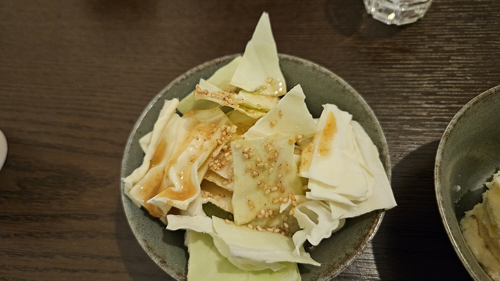 어쨌든 우리는 꼬치구이 집에 왔으니 여기에서 승부를 봐야했다. A세트라는 것과 소주를 주문하고 잠시 앉아 기다리니 순서대로 음식들이 나오기 시작했다. 손님들이 적지 않은 편이었는데도 주인장의 손놀림이 빠르고 전문가 적인 것인지라 그리 오래 기다리지는 않았다. 꼬치구이는 먹는 것에 비해 기다리는 시간이 너무 길어 항상 불만인데 여긴 어떻게 굽는지 몰라도 비교적 빠른 시간 안에 음식들이 나왔다. 감가를 으깨서 버무린 샐러드부터 일본식 분위기가 물씬 했는데 너무 바빠보여 묻지는 못했지만 분명 주인장은 일본에서 꼬치구이나 음식들을 배워 왔을지 모르겠다.