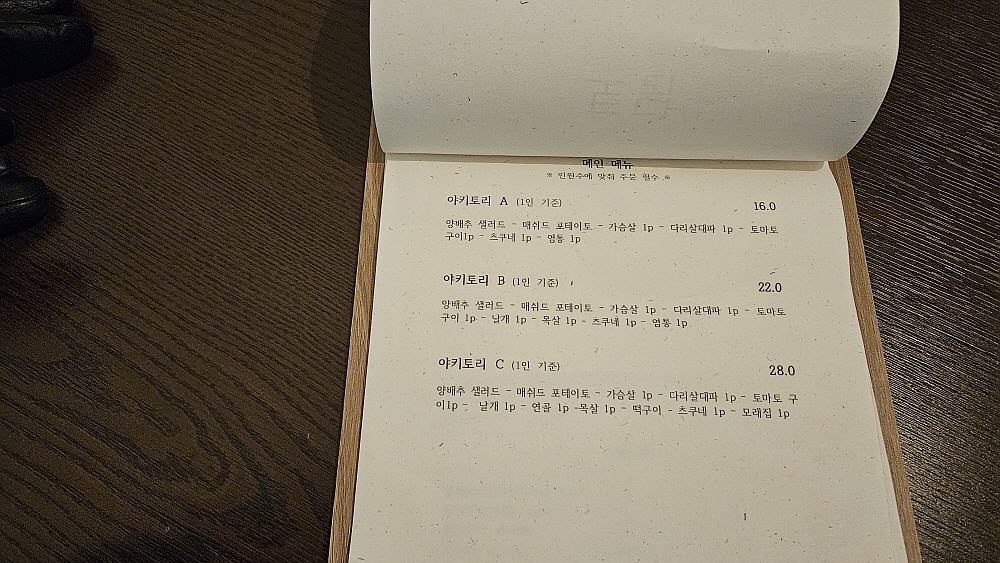 그래서 찾은 곳이 주문진 시내의 꼬치구이 전문점인 토닥이란 집이었다. 작은 규모의 선술집이고 주인장 1인이 운영하는 점포였다. 하지만 뭐랄까 처음 가 본 곳인데도 왠지 전문가의 느낌이 물씬하다고 해야 할까? 아무튼 그런 분위기에 끌려 여러 집들을 마다 하고 여기를 가게 되었다. 이번에 느낀 것인데 주문진 시내에는 이상할 정도로 돼지고기 식당이 많았다. 바닷가라 해산물이나 회를 위주로 먹을 것 같지만 여기도 현지 사람들 입맛엔 한국인 모두가 좋아하는대로 돼지고기가 더 익숙한 모양이다. 돼지갈비나 삼겹살은 물론이고, 특수부위를 파는 집들도 많았다.