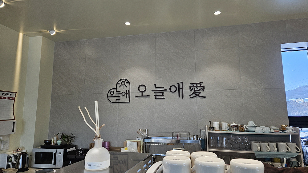 취재를 위해 신북의 마홀수영장을 가게 되었다. 이른 아침 이 근처에 올 일이 거의 없었다. 그런데 이번에 가면서 보게 된 카페가 있는데 8시부터 문을 연다는 이곳의 이름은 '오늘애' 이다. 일단 일을 먼저 하고 나오면서 들리게 되었는데 오전인데도 손님들이 제법 있었다. 원래 이 자리는 교회가 있던 곳이라 했다. 교회는 약간 옆으로 이전하고 그곳에 카페를 차린 것이란다. 오픈한지 한 달이 채 안 된 신생 카페답게 아주 깔끔하고, 산뜻한 분위기가 맘에 드는 곳이었다. 아침식사를 하지 않고 나왔기 때문에 우린 간단하게 빵과 커피를 주문했다. 이러면 그냥 브런치가 되는 셈인가?