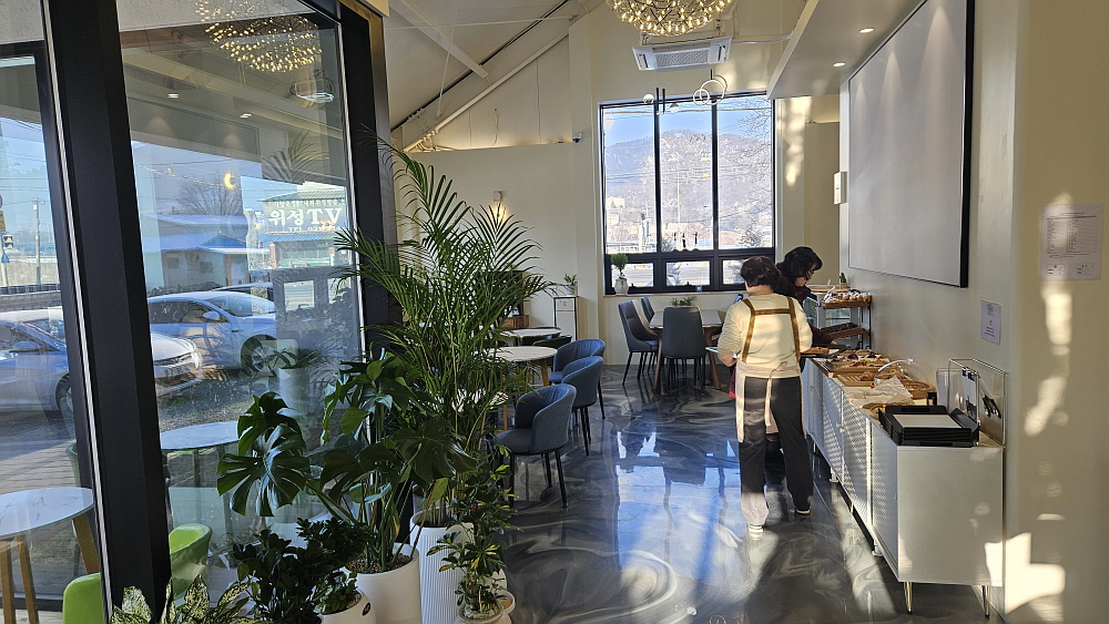 다소 하드한 느낌의 빵들을 먹고 있노라면 그렇게나 좋아하는 치아바타 생각이 난다. 여기 치아바타는 없었지만 그렇게 담백하고, 수수한 빵은 좋아하는 편이다. 만일 아메리카노 커피가 아니라 달달한 믹스 커피였다면 커피에 빵을 푹 찍어서 먹었을 것이다. 뭐 대단한 일을 한 것도 아니지만, 이렇게 여유있는 아침상을 받으니 뭐라도 한 것 같은 기분이었다. 의외로 그냥 커피를 사가는 손님들도 많았는데 역시 요즘 대세가 이런 카페와 빵이 아닌가 한다. 이상할 정도로 사람들이 자꾸 들어왔다. 근처에 직장이 있나? 하는 생각도 들었다. 아무튼 이렇게 차도 많고, 사람도 많은 것은 지역경제에 좋은 일이 아닐까 싶다.