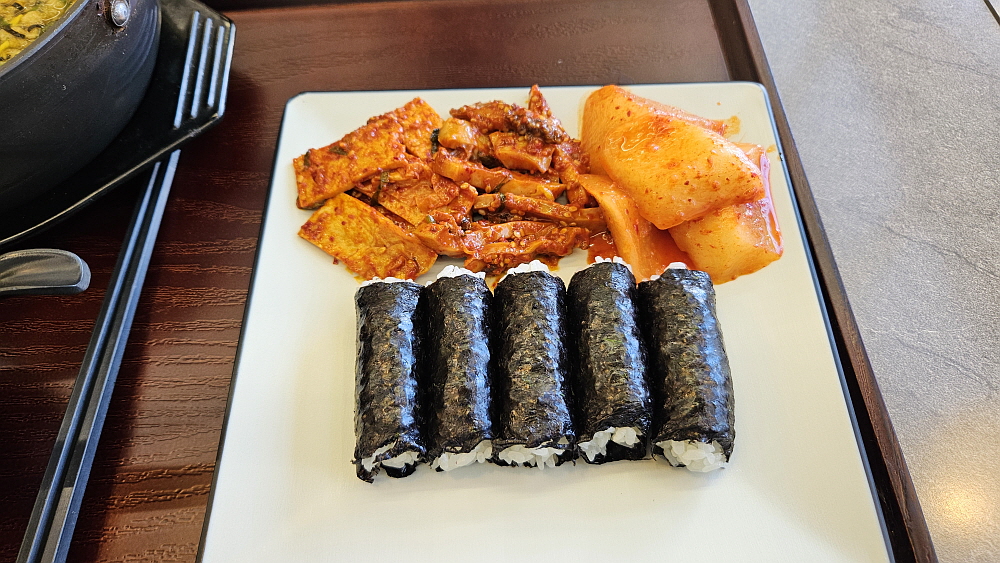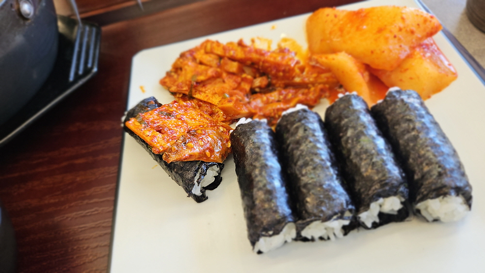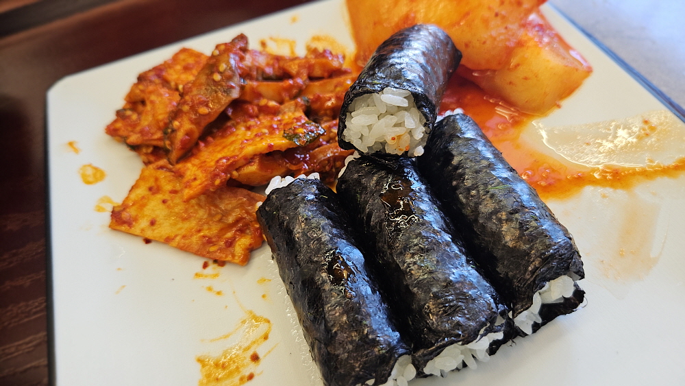 먹다 보니 우동보다 충무김밥을 더 주문하는 편이 나을 것 같았다. 사실 세트가 아니라면 충무김밥이 이보다 두 배는 더 나온다. '아 그랬어야 하는데...' 뻑뻑하고 아무런 간이 안 된 김밥이 주는 담백함의 묘미는 대단한 것이다. 어떤 반찬과도 잘 어울릴 수 있는 유연함의 극치라 하겠다. 물론 김의 품질도 중요할 것이다. 부산 여행에서 이렇게 현지인들의 식사에 최적화된 음식은 먹어 본적이 없는 것 같다. 하지만 아주 만족스러웠다. 자갈치 시장의 짭짤한 맛처럼 충무김밥의 뻑뻑한 맛이 부산의 정서를 말해주는 것 같았다. 여행의 묘미는 새로운 경험이라 하지 않던가... 이번에도 역시 부산의 맛난 충무김밥이 그런 묘미를 선사해 준 것 같다.