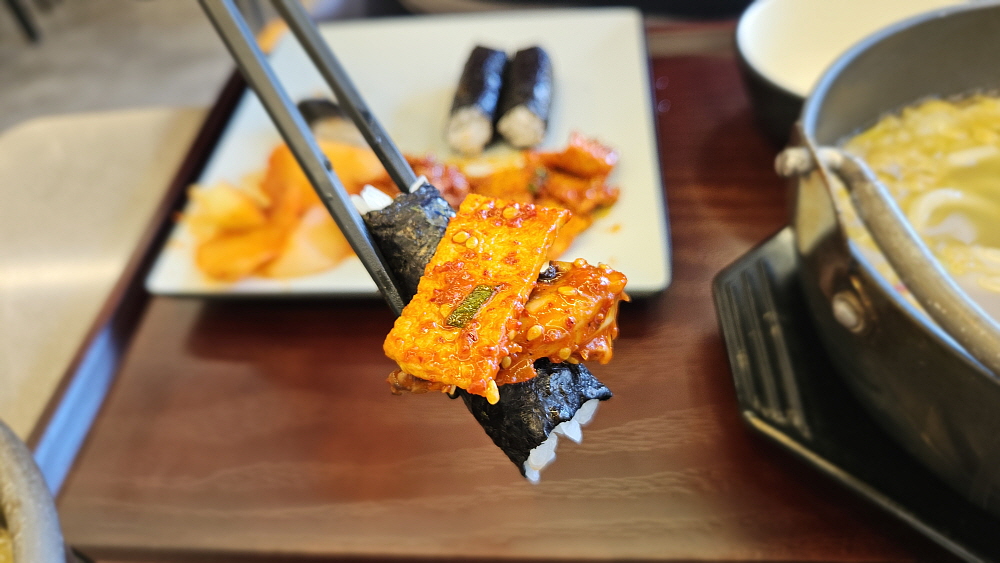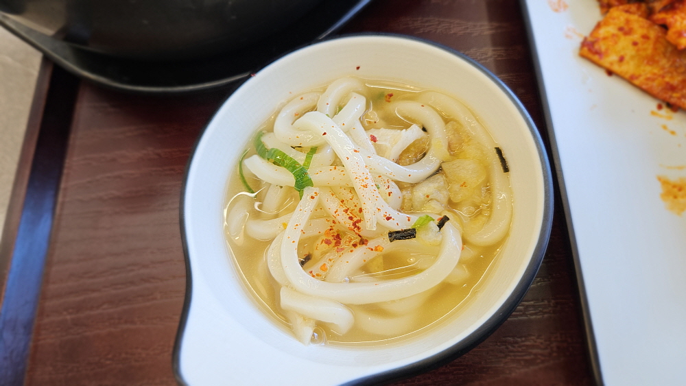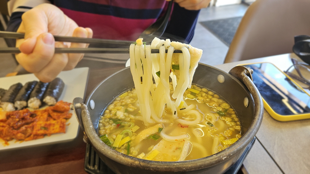 우리는 11,000원 짜리 충무 우동세트를 주문했다. 이러면 김밥과 우동이 함께 나온다. 나중에 안 사실이지만 이렇게 둘 다 세트로 주문하는 것보다 한 사람은 세트를, 한 사람은 그냥 충무김밥을 주문하는 것이 더 효과적인 방법이다. 아무튼 우리는 선 무당이 사람 잡는 격으로 이렇게 주문했다. 충무김밥은 주문이 들어오면 그 자리에서 말아 준다. 사실 말이 김밥이지 엄청 뻑뻑하다. 그냥 물을 찾게 된다. 그런데 이렇게 단순한 음식에 자꾸 젖가락이 간다. 그리고 먹고 난 후에도 텁텁함이 없다. 개운하다. 잘 익은 석박지를 힘께 먹는 맛이 그만이다. 그래서인지 몰라도 점심시간이 지났는데도 이집으로 계속 손님들이 들어왔다.