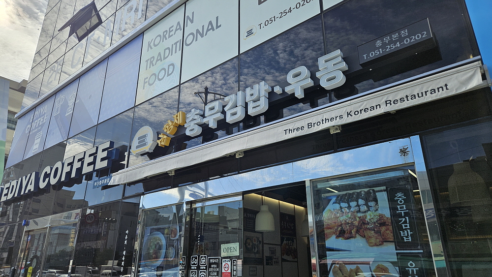 우리는 자갈치 시장 근처에 있는 이집에서 정통의 충무김밥을 맛볼 수 있었다. 이름은 '삼형제 충무김밥'이다. 김밥천국 같은 체인점 인줄 알고 들어갔는데 아니었다. 그리고 예전에 갔었던 허름한 통영의 충무김밥 집들과는 확연히 다른 깔끔하고 고급진 분위기의 충무김밥 집이었다. 정신없이 바쁜 어부의 아내가 싸준 도시락이 먹을 때를 놓치는 바람에 늘 상했었단다. 그래서 어부의 아내는 상하지 않을 단촐한 김밥을 싸고, 대신 간이 없는 김밥에 반찬으로 석박지 같은 것을 함께 넣어 주었단다. 그것이 충무김밥이다. 개인적으로 충무 김밥을 무척 좋아한다. 담백하고, 단촐한 맛을 즐기기 때문인지 모르겠다.