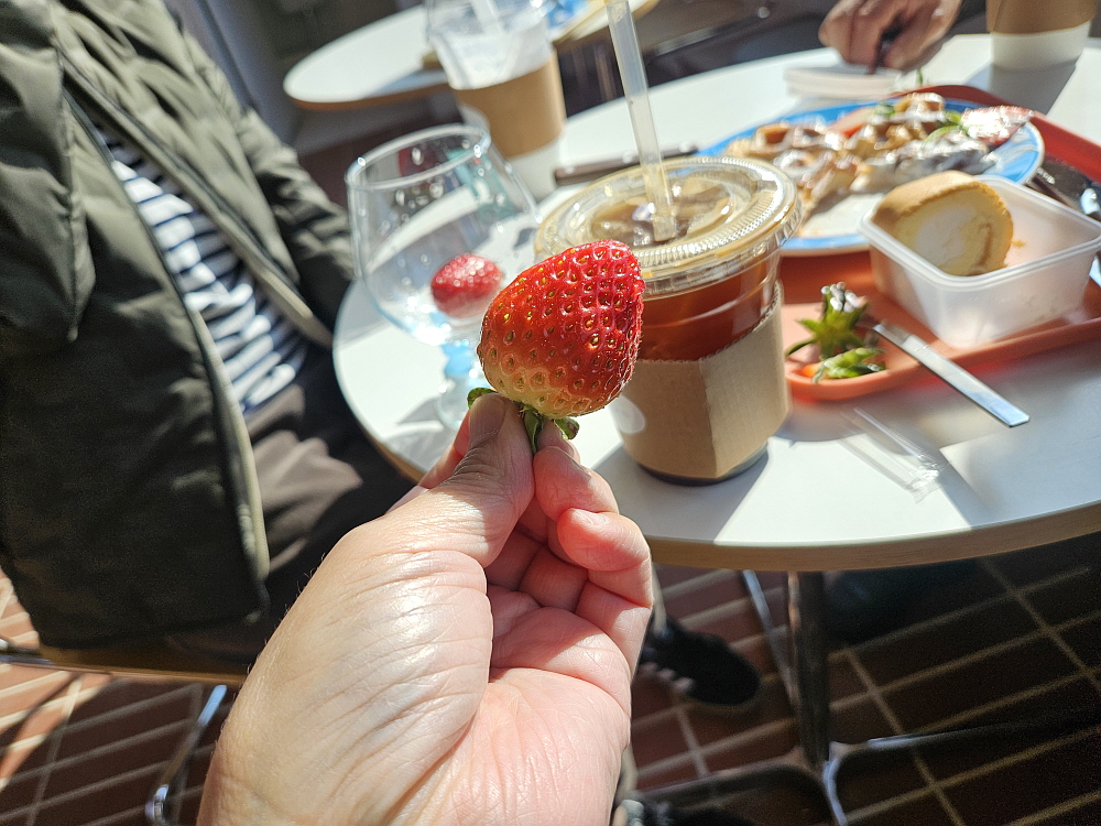 아이들이 노는 동안 어른들은 카페에서 커피 한 잔 마시며 유유자적 그렇게 여유있는 시간을 보낼 수 있다. 커피향이 그윽한 카페에서 먹는 딸기는 또 다른 즐거움을 선사한다. 사실 아무리 비닐하우스에서 일년 내내 농장을 운영한다지만 딸기는 지금이 제철이 아니던가? 모든 과일이나 농산물은 제철에 나는 것을 먹는 것이 제일 좋은 일이다. 언뜻 어울리지 않을 것 같은 딸기와 커피가 엄청 궁합이 잘 맞는다는 사실을 여기서 다시금 알게 되었다. 지금이 아니면 이런 맛의 조합을 만들기 쉽지 않으니 서둘러 창수면의 몽글몽글팜으로 가야할 것 같다.