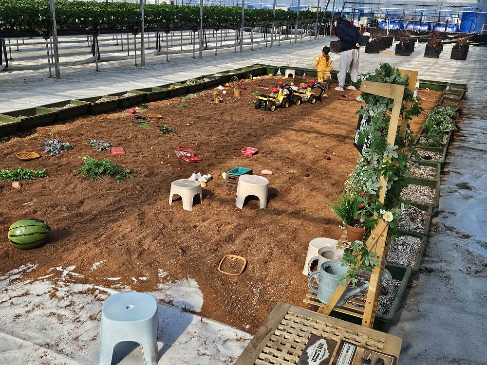 이날은 평일인데도 손님들이 더러 있었다. 주인장의 말처럼 도시에서 온 것 같은 가족들이 농장 흙놀이장에서 시간 가는 줄 모르고 놀이 삼매경에 빠져 있었다. 비록 농장이라고는 하지만 실내에 있는 것처럼 안전하고 미세먼지 걱정없이 놀 수 있는 공간이다 보니 아이들이나 부모들이나 만족해 하는 것 같았다. 딸기도 먹고, 체험도 하고, 흙장난도 하고 일석 삼조인 셈이다. 창수면 추동리는 전형적인 포천의 농촌마을로 아주 평화롭고 조용한 곳이지만 이곳 농장 덕분에 아이들 소리가 나는 생동감 넘치는 마을이 될 것 같다.