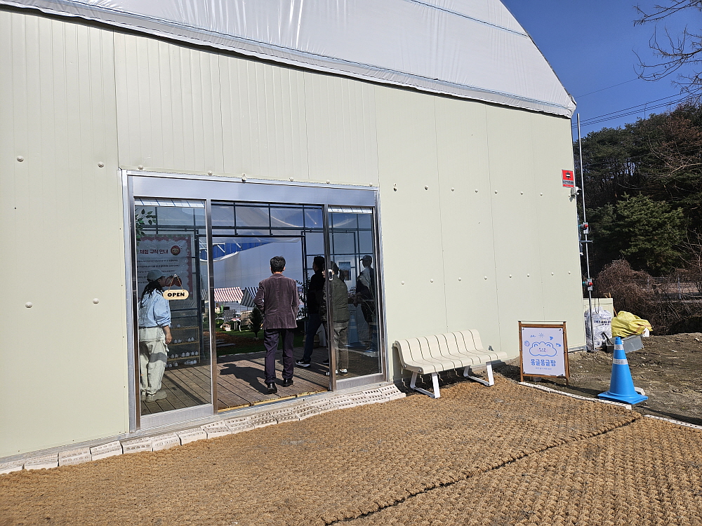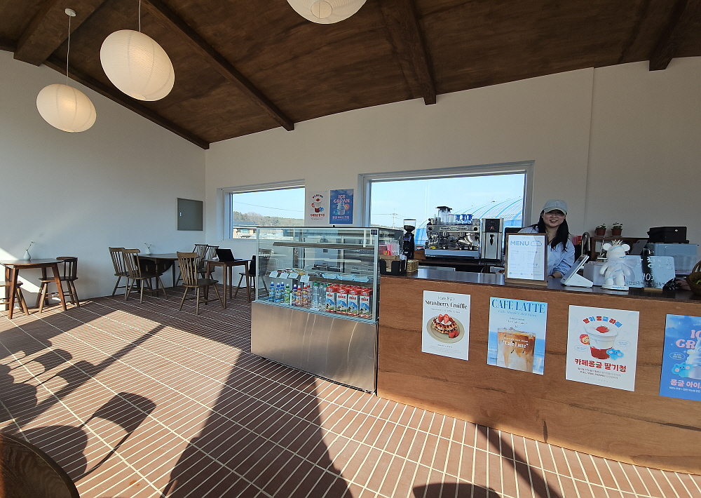 창수면 추동리에 위치한 딸기 농장 몽글몽글팜은 올 해 2월에 오픈을 했단다. 아주 새롭게 문을 연 농장이라 할 수 있다. 볕이 잘드는 추동리 마을에 위치한 이 농장은 체험과 딸기 따기를 할 수 있는 규모가 큰 비닐하우스와 커피를 마실 수 있는 카페로 구성되어 있다. 문을 연지 얼마 되지 않았는데 벌써부터 서울에서 어떻게 알고 찾아오는 이들이 제법 있다고 했다. 요즘 사람들 SNS로 소문 한 번 나면 정말 거리와 시간에 구애받지 않고 어디든 찾아 온다고 들었는데 정말 그런 모양이다. 새로 만든 농장이다 보니 모든 것이 새것이다.