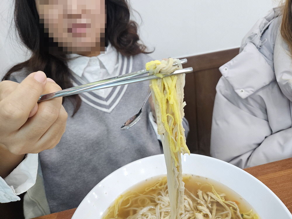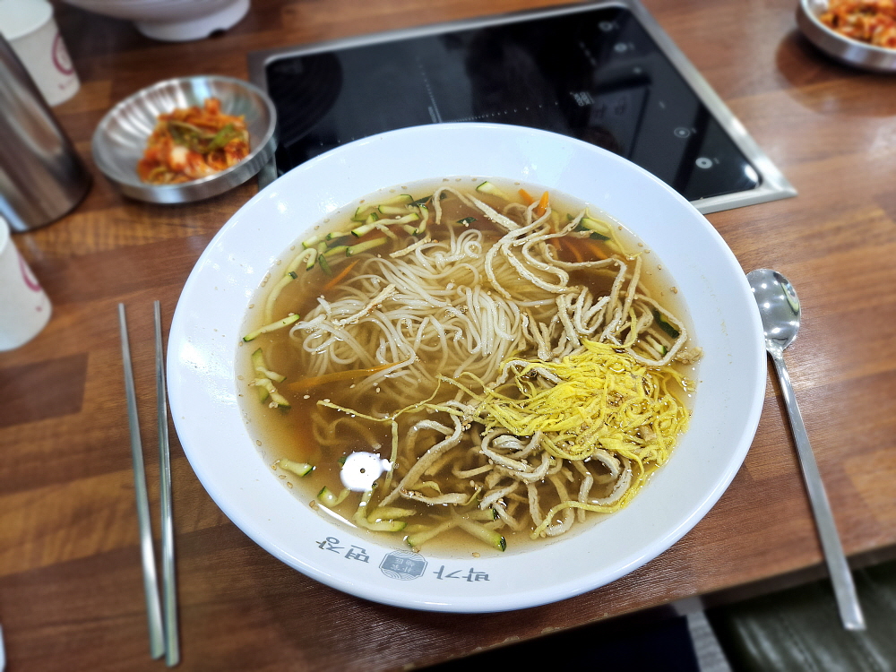 횟집일 때는 잘 몰랐는데 막상 실내로 들어가 보니 규모가 엄청 컸다. 하긴 횟집은 각 방에 손님들이 들어가는 방식이라 함께 앉아 먹는 공간은 별로 보지 못했다. 하지만 이렇게 한꺼번에 터 버리니 꽤나 넓은 식당이었던 것이다. 면장이라는 이름처럼 여기는 면을 자가제면을 한단다. 그러니 간단한 잔치국수도 뭔가 다른 식감이 있는 것이다. 잔치국수의 가격은 8,000원이다. 이게 싼 것인지 비싼 것인지 잘 모르겠다. 아무튼 잔치국수가 나와서 보니 비주얼이 예사롭지 않더라는 것이다. 우리가 흔히 보아왔던 잔치국수라기 보다는 우동같다고 할까?