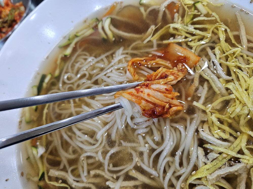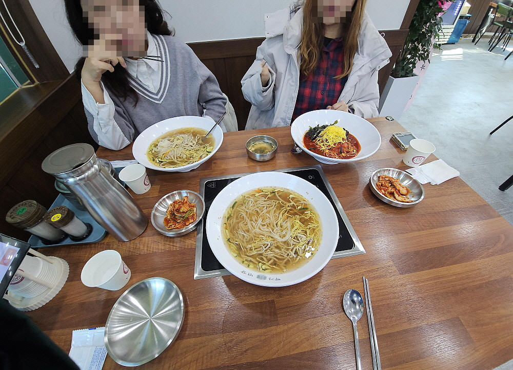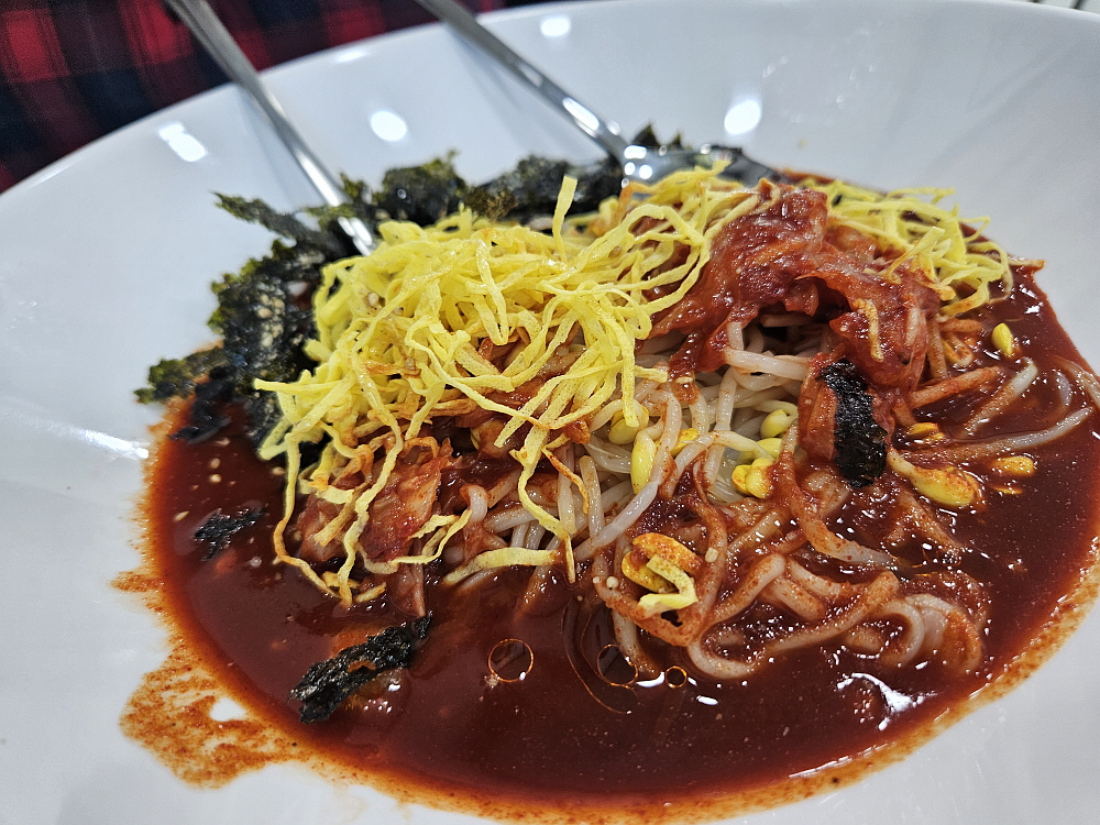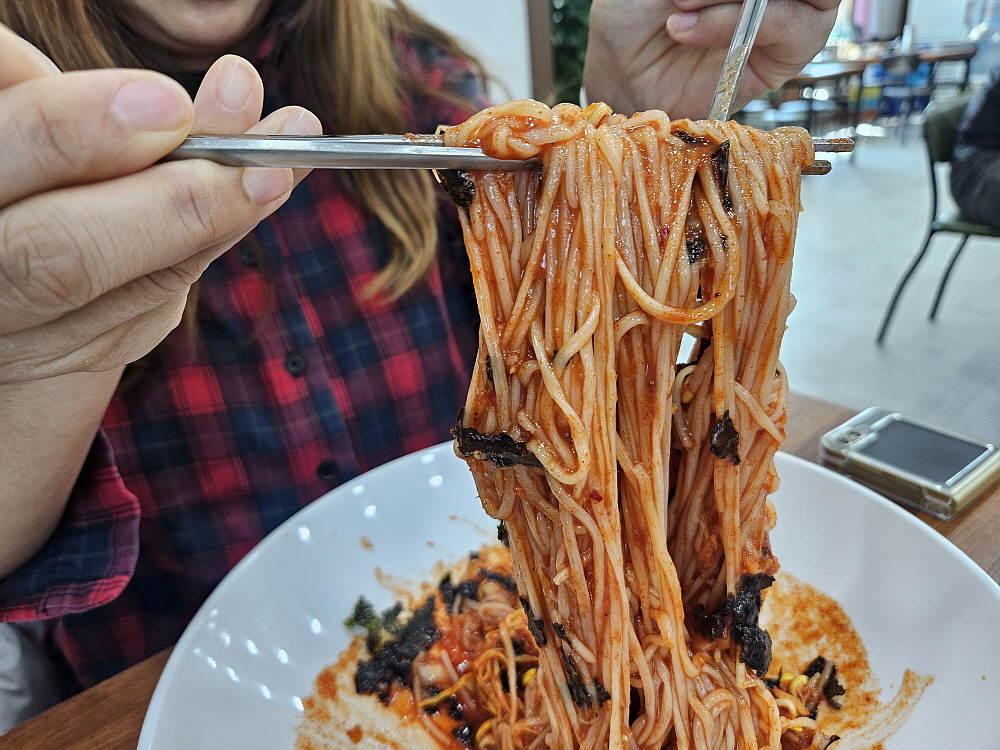 잔치국수와 달리 비빔국수는 양념이 센 편이었다. 단짠맵의 전형적인 맛이다. 이런 양념을 좋아하는 사람이라면 당연히 즐겨 먹을 국수라 하겠다. 면은 잔치국수와 같은 직접 만든 것이다. 이런 맛은 다른 곳에선 보기 드문 것이다. 하지만 약간은 호불호가 있을 것 같기는 했다. 아주 매운 것은 아니지만 전체적으로 양념맛이 강한 것은 사실이다. 새로 문을 연 집이라 그런지 사람들이 꽤나 많았다. 한국 사람들의 국수사랑은 유명하지 않던가? 누군가 종업원에게 콩국수를 연중 사시사철 파냐고 물었는데 그렇단다. 여기는 겨울에도 콩국수를 먹어 볼 수 있는 곳이다.