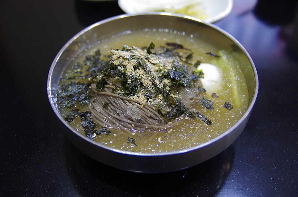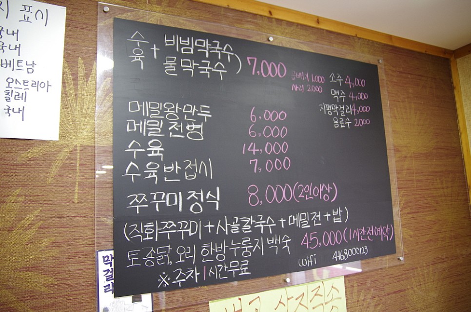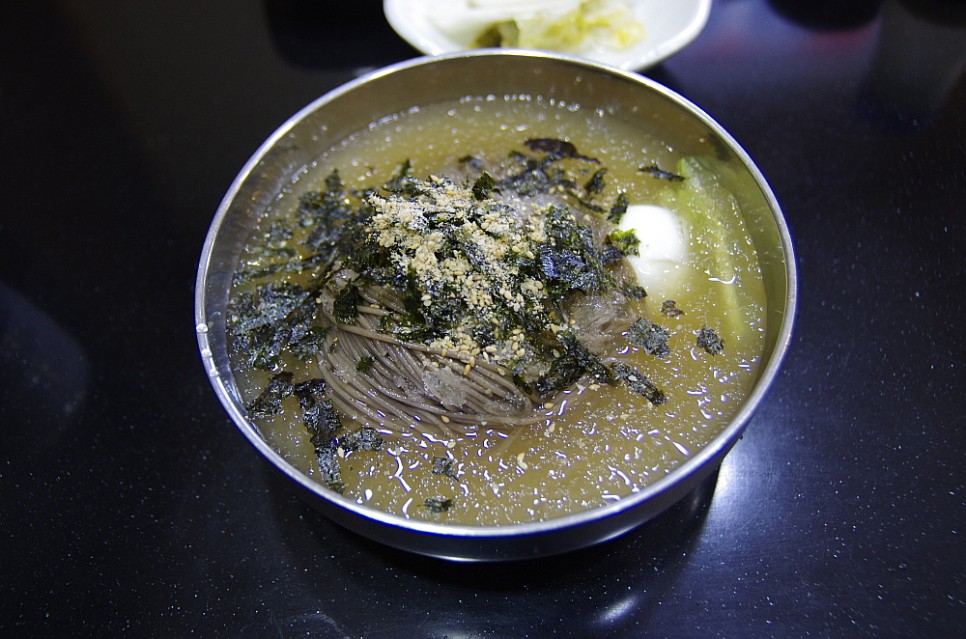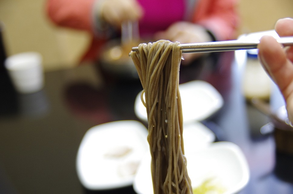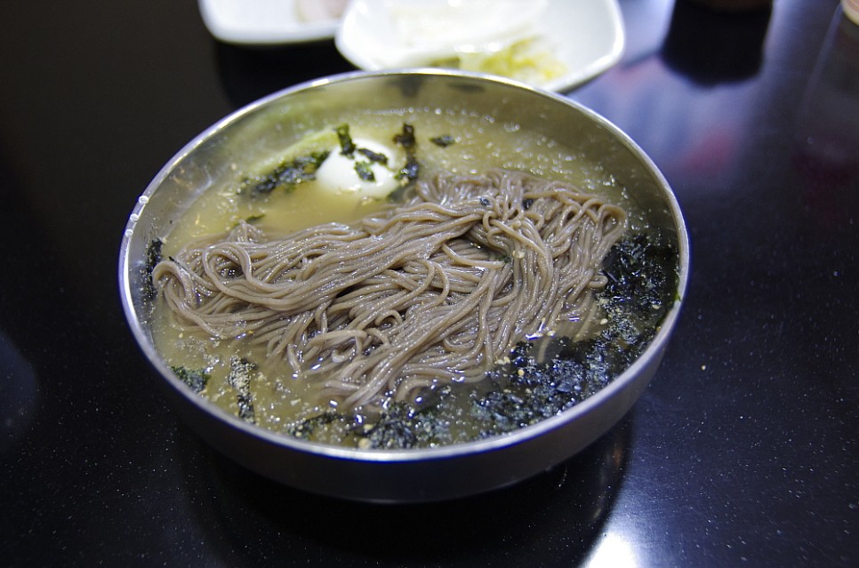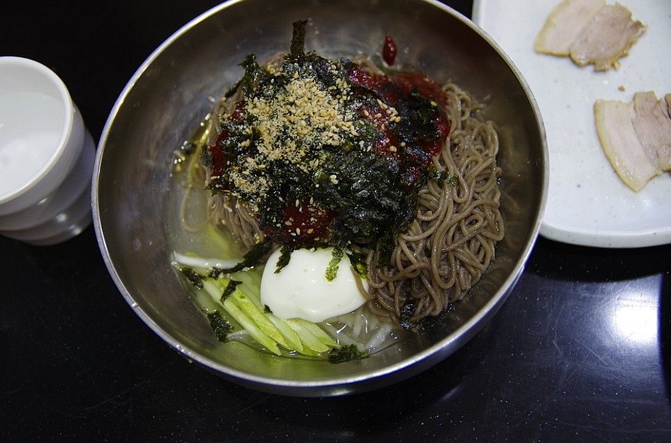 가성비도 좋은 곳이다. 원래는 그냥 막국수를 한 그릇에 6,000원을 받았다고 한다. 그런데 여기에 수육고기를 주면서 7,000원으로 가격을 조정했다. 막국수와 정말 잘 어울리는 수육은 식사로도 안주도로 많은 사람들이 좋아하는 음식이다. 다른 곳에선 수육 없이 그냥 국수만 으로 이 가격을 받는데 서비스가 있다니 놀라운 일이다. 실내는 마치 일식집을 연상케하는 분위기였다. 방안의 좌석도 로바다야끼 처럼 안으로 발을 넣을 수 있도록 밑은 파 놓은 방식이었다. 가격과는 달리 분위기는 무척이나 고급진 곳이었다.