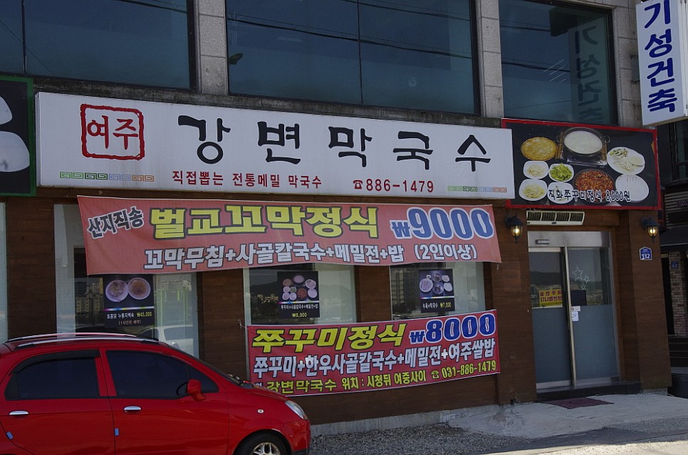 춘천만큼이나 막국수로 유명한 여주에는 전국으로 이름을 알린 천서리 막국수도 있다. 체인점으로 많은 지역에서 막국수를 팔고 있을 만큼 여주도 막국수의 고장이다. 그런데 정작 여주에서 제대로 된 막국수를 먹어 보지 못했다. 그래서 이번 여행에서 일부러 봐 두었던 이집을 가기로 했다. 바로 여주 시청 옆에 있는 강변 막국수다. 남한강의 그림같은 뷰를 눈앞에 두고 먹는 막국수는 또 다른 행복감을 준다. 아마 여주 시청의 직원들은 점심시간에 이런 좋은 분위기의 식당에서 막국수를 즐기고 있을 것이다.