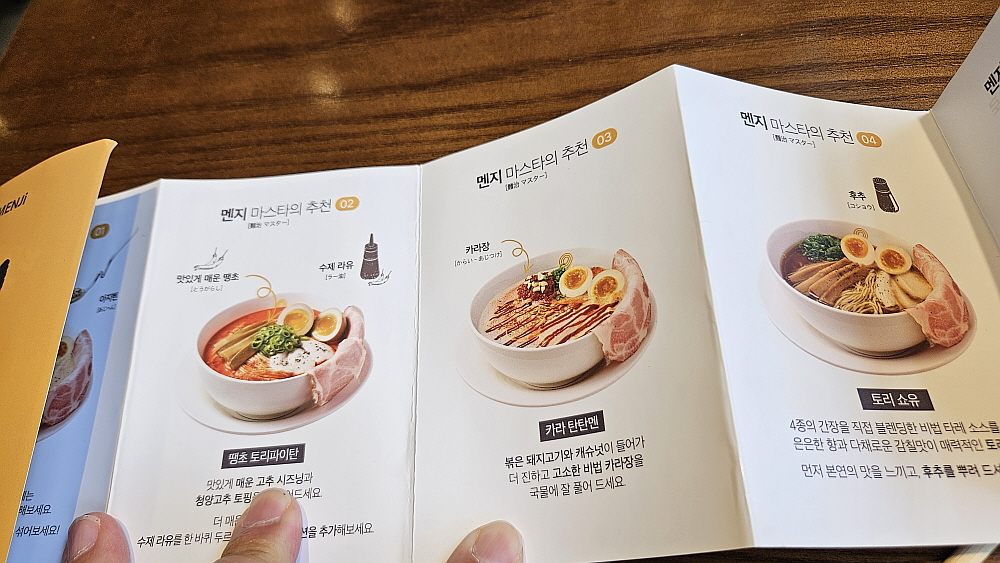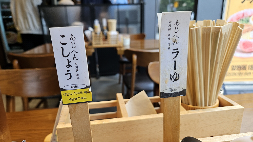 라멘의 종류에 따라 후추만 넣거나 라유라는 고추기름을 넣거나 땡초를 넣기도 한다. 물론 개인취향이다. 토리파이탄이란 메뉴가 주력이라는데 이건 도무지 뭔지 모르겠다. 토리라는 말이 닭 같은데 말이지... 한 사람씩 주문하고 잠시 앉아 기다리면 종업원이 주문한 라멘을 가져다 준다. 비교적 작은 가게인데도 손님들이 가득했다. 가격은 싸지 않다. 우리가 주문한 소유라멘에 닭고기를 두 점 얹으면 12,500원이 된다. 라멘 가격치고는 비싼 편이다. 아마도 일본 현지보다 더 비쌀 것이다. 그래도 이런 맛을 어디서 볼 수 있겠는가? 정통의 맛을 보기 위한 비용이라 생각하자~