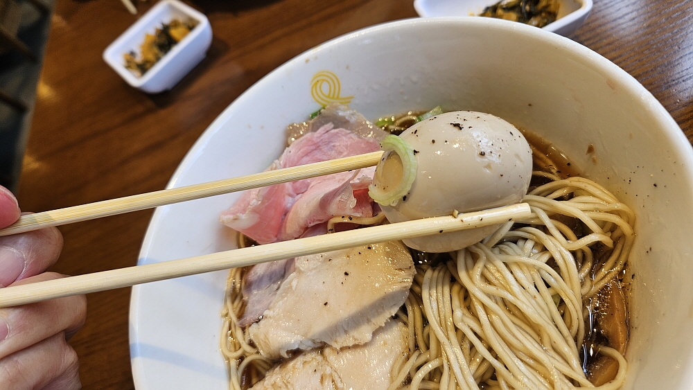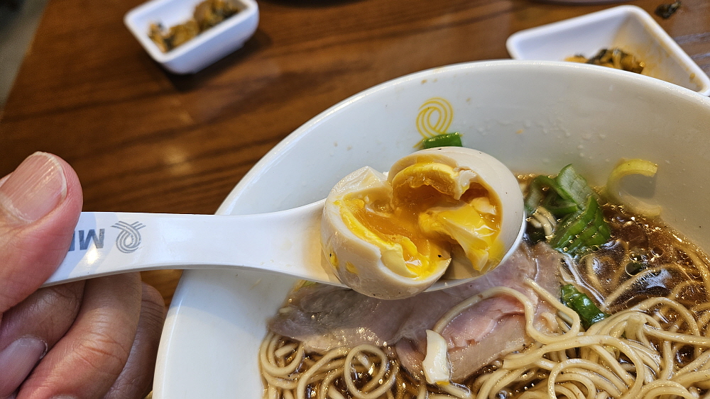 소유 라멘은 간장라멘이라는 뜻이다. 고기국물을 간장베이스로 만들었다는 뜻인데 그래서인지 엄청 짰다. 정통 일본식은 이렇게 짠가 보다. 하긴 일본사람들이 짜게 먹는다는 말은 자주 들었다. 국물도 넉넉하지 않다. 다소 적다 싶을 정도다. 그런데 짜니까 뭐랄까 진짜 진한 육수를 주는 것 같다. 햄처럼 생긴 챠슈는 돼지고기 맛이 거의 나지 않았다. 잡내를 얼마나 잘 잡았는지 이게 햄인지, 고기인지 분간이 안 갈 정도였다. 닭고기 역시 마찬가지였다. 본고장의 맛을 내기 위해 작은 것까지 세심하게 신경 쓴 흔적이 보였다. 반숙계란도 그렇고, 죽순으로 만든다는 멘마도 그렇다.