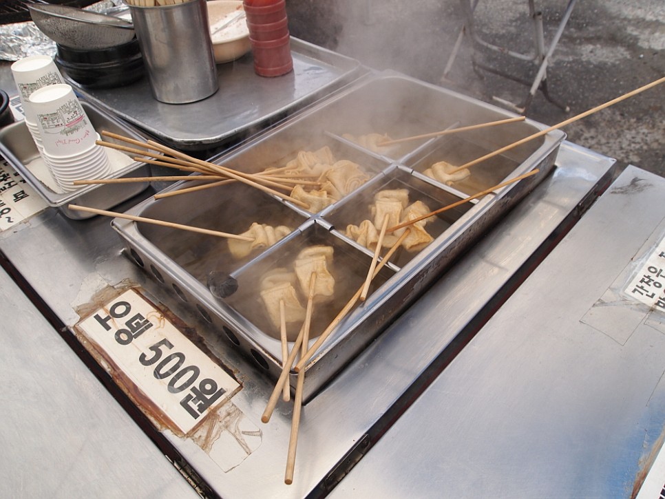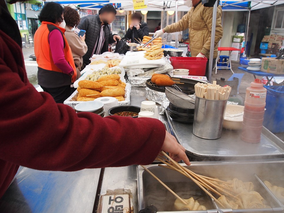 가장 먼저 우리를 맞은 것은 어시장 입구에 있는 노상 먹거리였다. 이곳 시장은 공영주차장이 잘 되어 있는 편이라 주차장에 차를 세우고 조금만 걸으면 금새 어시장 입구로 갈 수 있다. 이른 시간 집에서 나온 탓에 허기가 있었는데 정말 잘 되었다 싶었다. 떡볶이만 빼고 우리가 좋아하는 길거리 음식이 다 있었다. 아마 아침부터 매운 떡볶이를 먹는 사람은 없기에 주요 아이템에서 그게 빠졌나 보다. 하지만 뜨끈한 오뎅 한 고치를 먹으면 몸도 풀리고 속도 든든하기 마련이다. 우리 같은 생각을 하는 사람이 많은지 전엔 잘 몰랐지만 가만히 둘러 보니 이런 길거리 음식점이 제법 많았다. 아이템도 다양하고, 분위기도 편안하고 장보기 전 요기로 이만한 것이 없지 싶다.