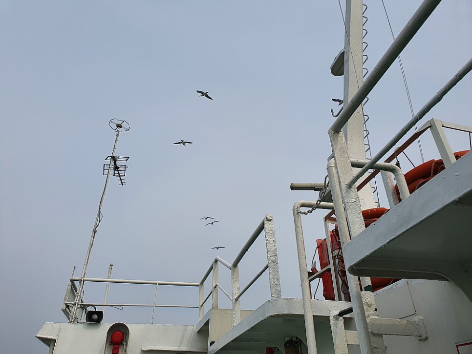 의기양양, 우리는 쇼핑한 젓갈을 들고 다른 곳에 가기 보다는 월미도에서 배를 타고 구읍뱃터로 넘어 가기로 했다. 이 코스는 많은 사람들이 애용하는 노선으로 한 나절 시간 보내기 최적의 장소가 아닌가 한다. 코로나 영향으로 월미도 선착장도 사람이 거의 없었다. 이렇게 배가 나를 기다리고 내가 가서 헐레벌떡 표를 사 승선하기는 처음인 것 같다. 항상 배가 오기를 다른 차들과 줄을 서 기다리곤 했는데 말이다. 아직은 바닷 바람은 무척 차다. 그냥 밖에 서서 바닷바람을 맞으며 배를 타기는 어려웠다. 그래도 얼마만에 느껴보는 일탈과 자유의 기분인가? 남이 주다 버린 새우깡 몇 개 집어 갈매기들한테 던져 주는 재미도 느끼고 바다도 보고 참 즐거운 시간이었다.