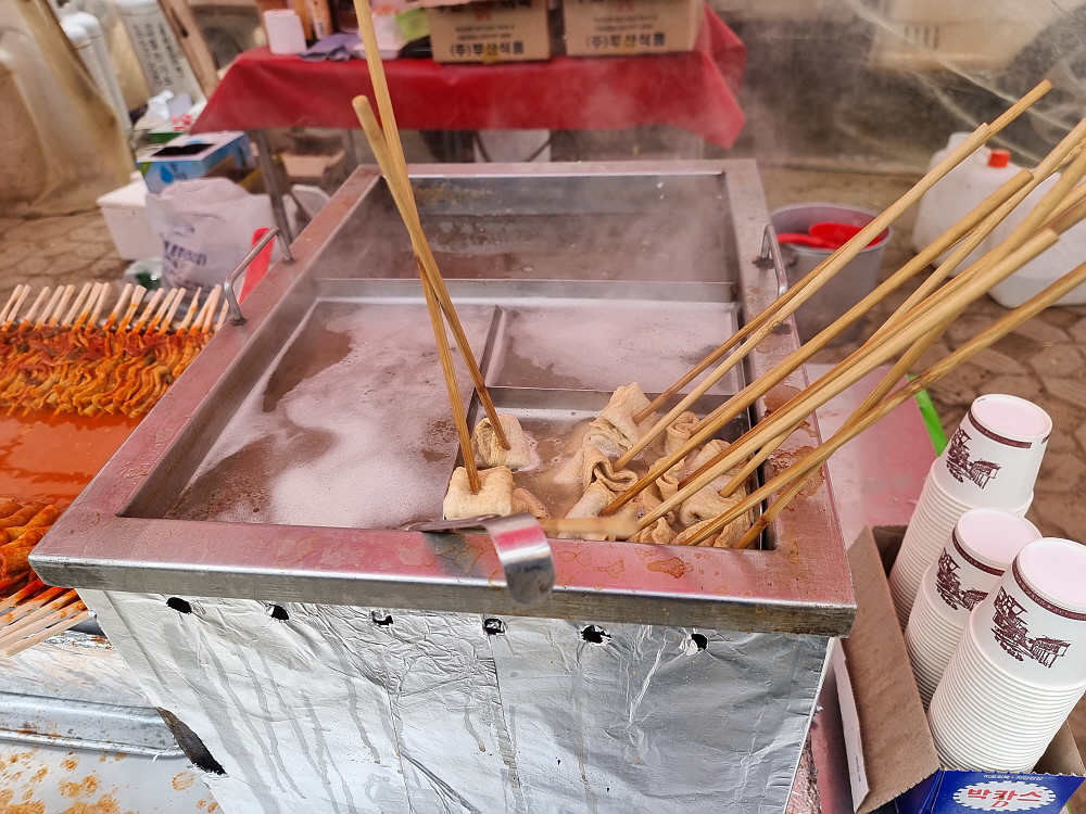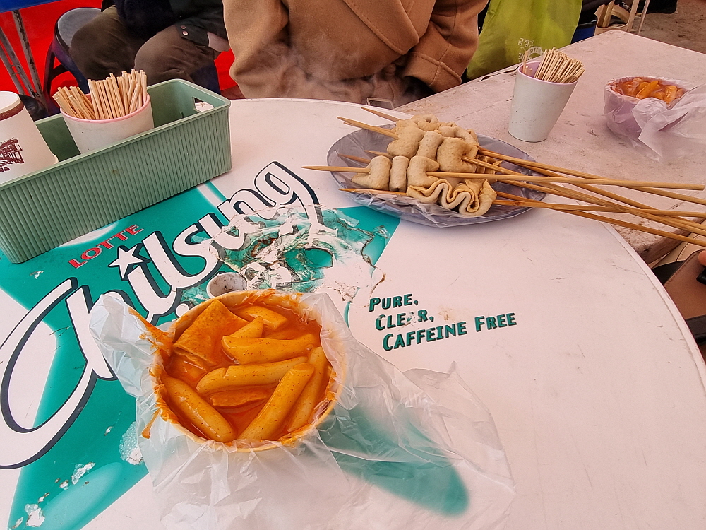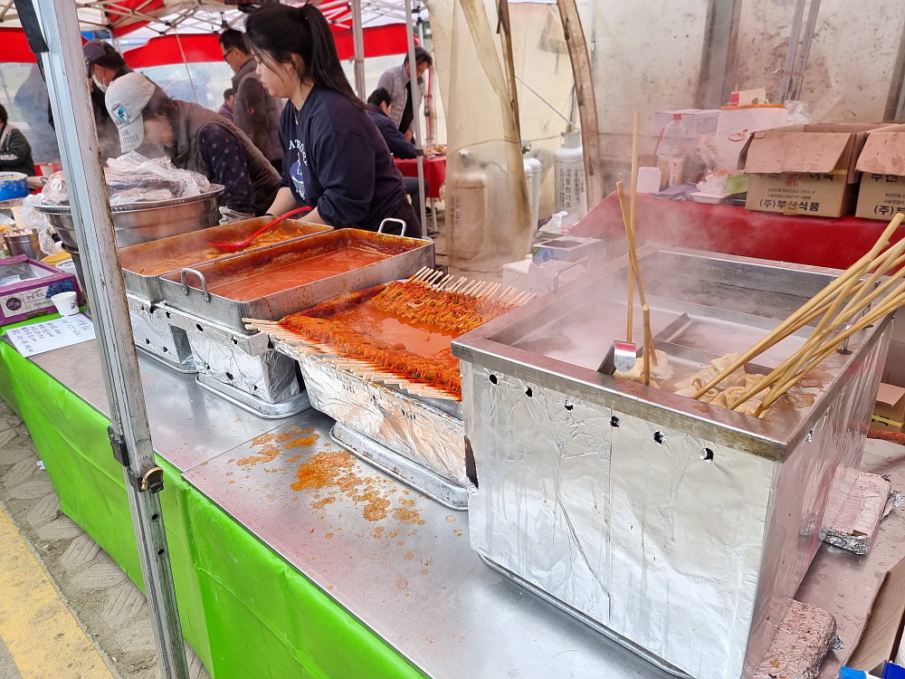 거기에 다양한 먹을거리가 있어 사람들을 즐겁게 한다. 봄이 오는 길목, 화창한 날씨 속에서 장터 구경을 간 사람들은 중간중간 자리 잡은 먹거리 점포에서 허기진 속도 달래고, 맛난 주전부리도 즐긴다. 이날 우리가 선택한 곳은 떡볶이와 순대, 오뎅과 튀김을 파는 전형적인 길거리 음식점이었다. 평소 이렇게 점심을 먹지 않지만 이날 만큼은 이런저런 이유 따지지 말고 그냥 자리 잡고 앉아 즐기기로 했다.