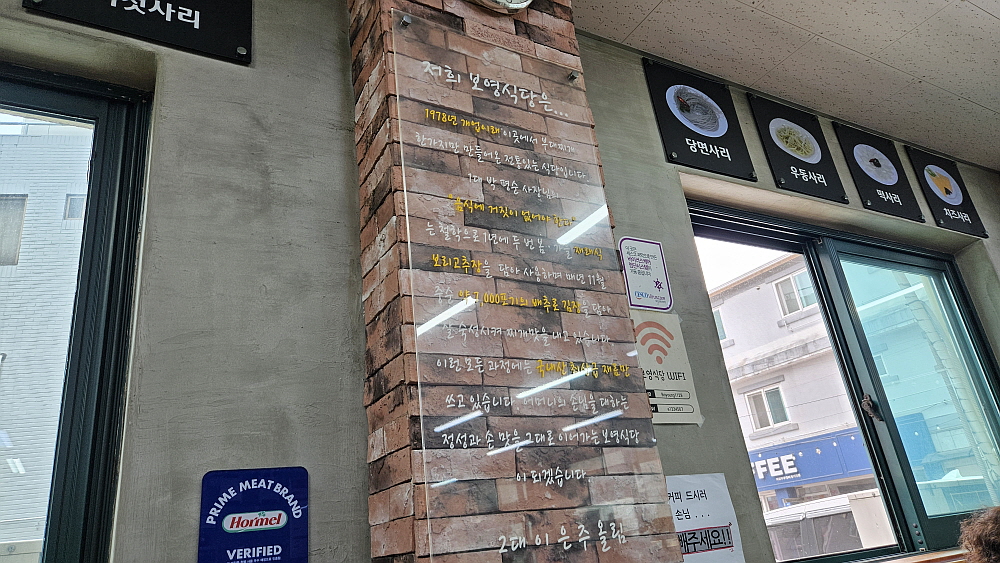 재료가 비슷하니 맛도 비슷할 수밖에... 물론 다 같은 것은 아니지만 말이다. 이날 간 보영식당은 조금 진한 국물과 양념맛이 나는 집이다. 여기도 꽤나 오래된 집이고, 나름의 단골들도 많다. 주차장에 차를 세우려고 하면 보영식당에 왔는지를 묻는다. 오뎅식당 온 사람들이 눈치도 없이 들어오는 모양이다. 우리야 처음부터 보영식당을 가려고 왔으니 진 단골이 맞다. 오랫만에 왔더니 부대찌개의 값이 일 인분에 12,000원이 되었다. 라면사리 하나 넣으면 둘이 먹는데 25,000원이 된다. 저렴하고 푸짐한 서민의 찌개라 하기엔 살짝 값이 좀 나가는 음식이 된 것이다.