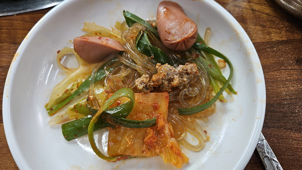 드디어 찌개가 완성되었다. 우선 라면사리부터 집어 먹는다. 사람마다 취향이 있겠지만 불기 쉬운 라면부터 먹는 것이 순서일 것이다. 거기에 푸짐하게 들어간 소시지와 햄을 밥과 함께 먹는다. 국물을 자작하게 부어 국밥처럼 만드는 것도 잊지 않는다. 정말 세월을 뛰어 넘어 입안을 천국으로 만들어 주는 시간이다. 부대찌개의 맛은 벌써 수 십년째 만족하며 먹는 말 그대로 영혼의 맛이다. 밥과의 궁합도 소주와의 궁합도 빼놓을 수 없을 정도다. 정말 단촐한 구성이지만 함께 어우러져 가공할 만한 맛을 만들어내니 참 신기할 따름이다. 오늘도 결국 건강이니, 염분이니 하는 걱정 따위는 내려놓고 또 정신없이 한 그릇 먹고 말았다. 여긴 그런 곳이다.