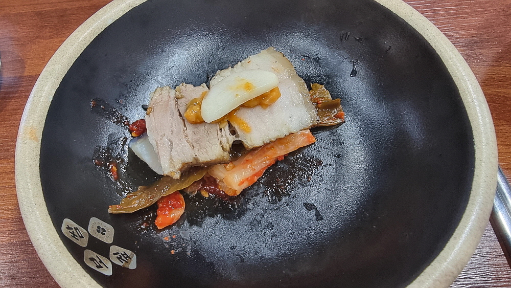 돼지고기를 가장 건강하게 먹는 방법으로 보쌈 고기를 이야기들 한다. 물로 익힌 고기는 기름도 빠지고, 부드러우면서 이가 시원치 않은 노인들도 먹을 수 있을 만큼 부담없는 고기가 된다. 돼지고기의 가장 좋은 부분만 먹을 수 있단다. 하지만 아무래도 우린 이렇게 물에 빠트린 고기보다는 직화로 그냥 불위에서 굽는 고기를 더 좋아한다. 하지만 건강을 생각한다면 가끔은 일부러 보쌈고기를 찾아 먹어야 한다. 보쌈고기는 어디나 비슷한 식감이다. 하지만 이집은 그 보쌈 고기에 짚불의 향을 입힌 곳이다. 부드러운 고기와 그윽한 짚의 향이 어우러지는 정말 괜찮은 맛이다.