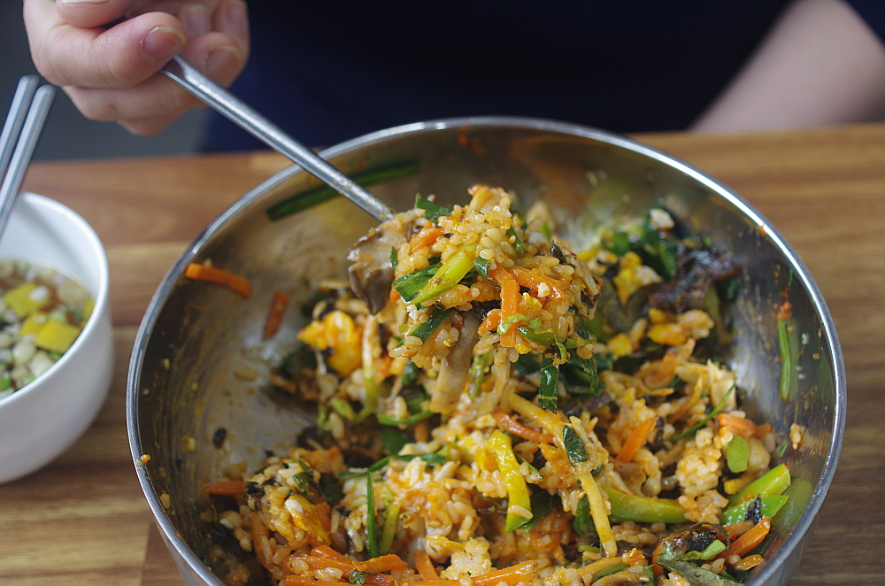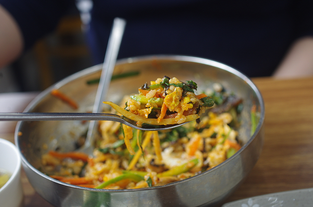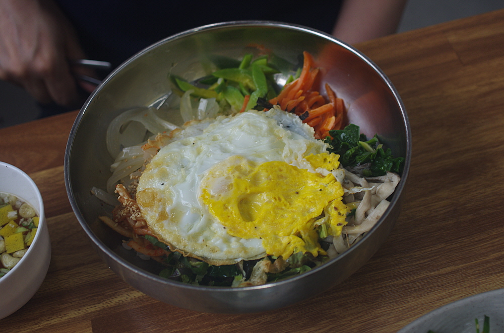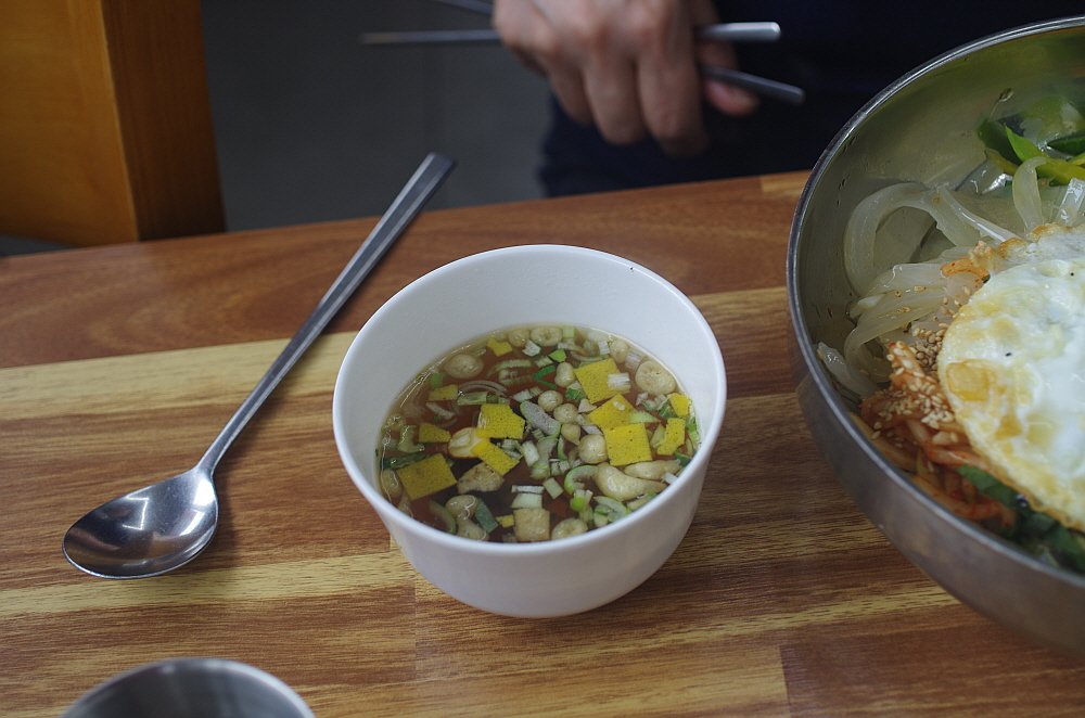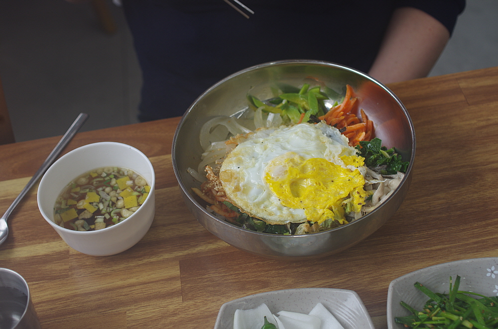 가격이 저렴하지만 밑반찬도 넉넉하게 나오고 무엇보다 깔끔한 상차림이 맘에 들었다. 통영의 다른 집들에 비해 규모도 큰 편이었다. 두 개 정도 나오는 계란말이가 어찌나 반갑고 고맙던지... 비빔밥은 우리가 상상하는 바로 그 비주얼이다. 날치알이 듬뿍 들어 있다는 것만 다른 것이다. 가운데 주인공처럼 자리 잡고 있는 계란 후라이가 참 보기 좋았다. 밥과 함께 고추장을 넣고 비비는 것은 다른 비빔밥과 크게 다를 것이 없다. 여러 나물들이 함께 들어 있어 왠지 포만감 외에 건강함도 주는 것 같은 든든한 밥이다.