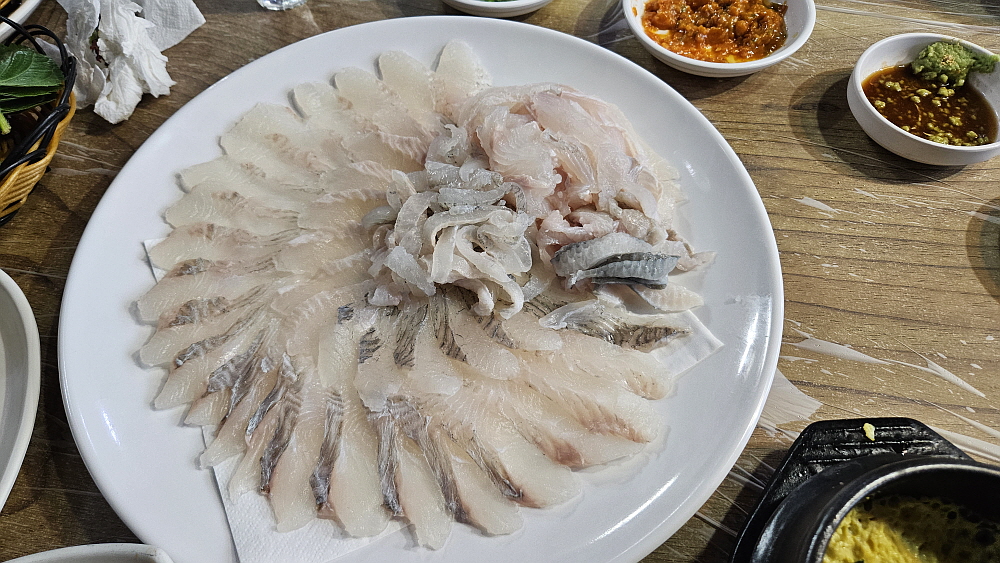 4만원짜리 소 사이즈 회가 이렇게나 양이 많다. 정말 바닷가 사람들이 회 사랑은 대단한 것 같다. 우린 결국 둘이서 다 먹지 못했다. 양으로 회를 먹는 사람들의 양과 우리가 어찌 같을 수 있을까? 바닷가 사람들이 회를 먹는 모습을 보면 회 좋아한다는 소리를 하지 못하겠다. 바로 회를 떠온터라 아주 신선하고 달달한 맛까지 났다. 정말로 신선한 회인 것이다. 소주가 술술 들어갔다. 사실 횟집에서는 별다른 스키다시가 필요없다. 만일 생선회를 좋아하는 사람이라면 말이다. 회를 좋아하지 않으니 자꾸 다른 반찬들에 젖가락이 가는 것이다. 화려하지 않아도 신선하고 맛난 회가 있으니 이날 저녁 투어는 아주 성공적이었다.
