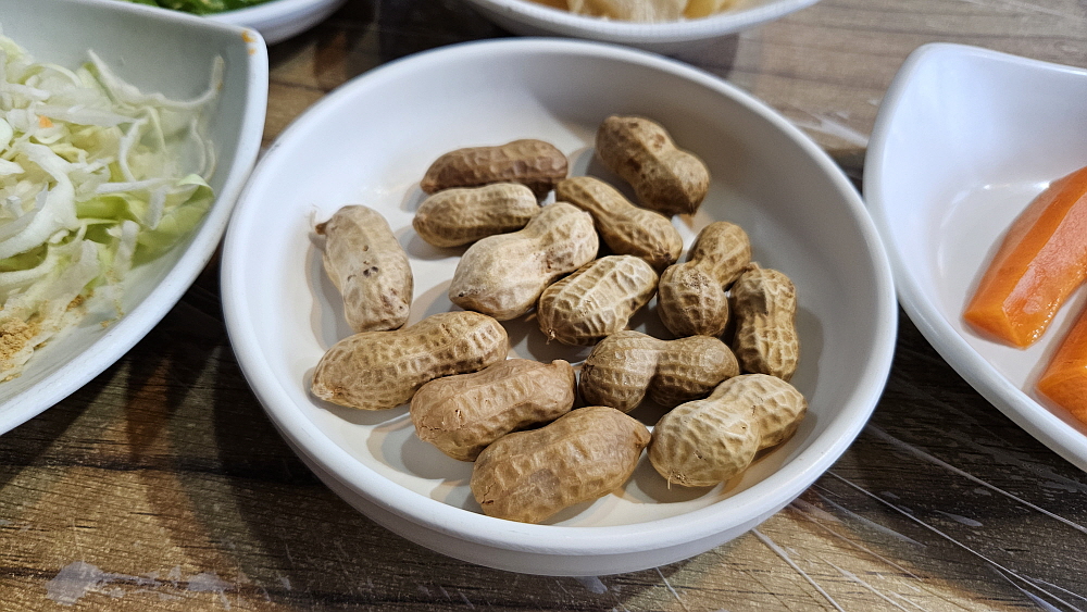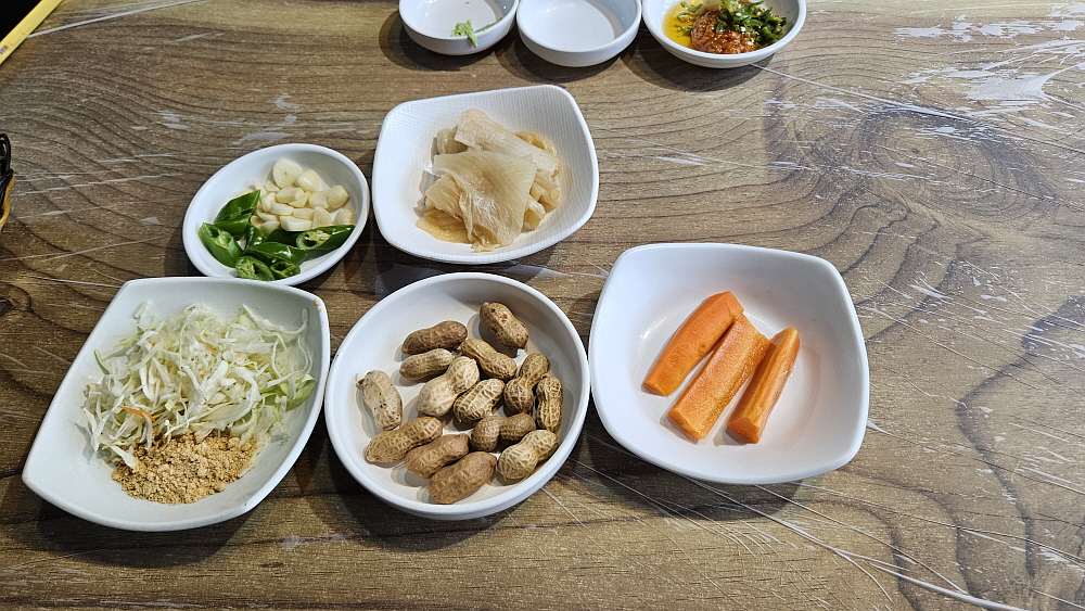 또 하나 여기서 특이하게 본 것은 바로 저 밥이다. 나중에 회가 나오면 손님이 직접 회를 싸서 초밥으로 만들어 먹으란다. 이런 구성은 다른 곳에서 본적이 없다. 참 특별한 구성이다. 땅콩을 주는 것도 그랬다. 가만히 보면 모든 것이 좀 우리가 평소 먹었던 횟집의 그것과 조금씩 달랐다. 서둘러 소주를 주문했다. 횟집에서 소주 없이 회를 먹는다는 것은 어쩌면 죄일 수 있다. 통풍 땜에 거의 한 달만에 소주를 마시는 것 같다. 하지만 여기까지 와서 이런 저런 신경을 쓰면서 먹고 싶지는 않다. 좀 불편해지더라도 이날은 무조건 소주를 먹기로 했다.