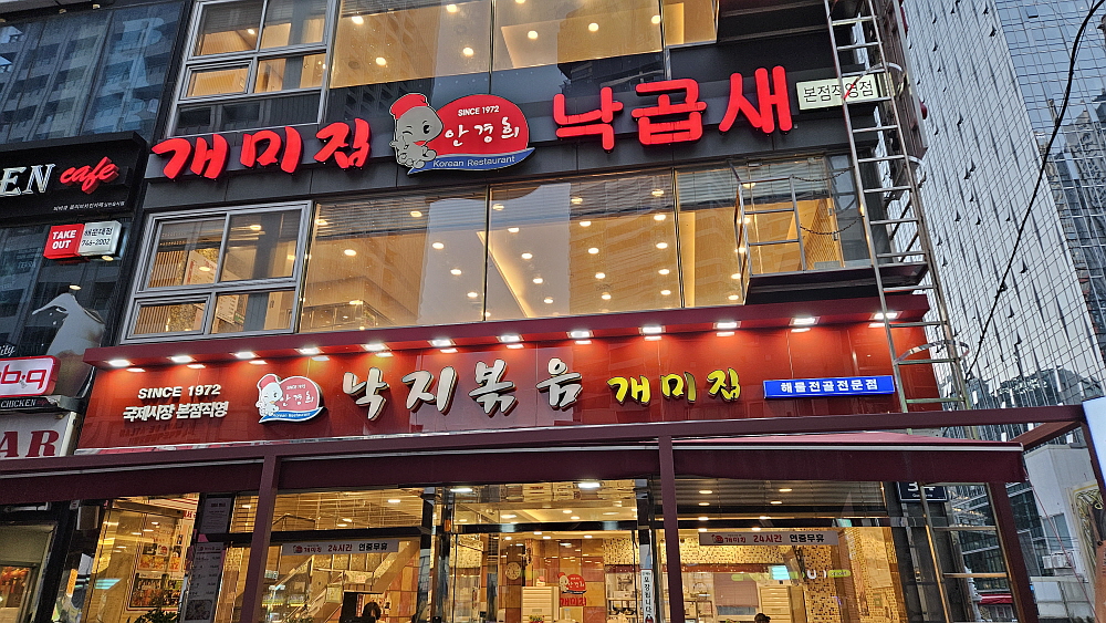 해운대를 해변만큼이나 유명하게 만든 먹자골목이 있다. 골목이라기 보다는 도로변 양쪽으로 늘어선 명물거리라는 표현이 더 맞겠다. 대부분 부산을 대표하는 식당들이 자리를 잡고 있다. 이번에 느낀 것인데 왜 이 도로변에 타로점을 봐준다는 사람들이 많은지 모르겠다. 아예 작은 점포 같은 것을 차리고 늘어서 영업을 하고 있다. 우리는 이 길을 두 어번 두리번 거렸다. 과연 어딜 가야 부산을 대표하는 저녁식사를 할 수 있을 것인가... 그러다 이집을 선택했다. 예전에 왔을 때도 들어가 보고 싶었던 곳이다. 이름은 '개미집 낙곱새'라는 곳이다. 국제시장에 본점이 있고, 여긴 본점의 직영점이란다.