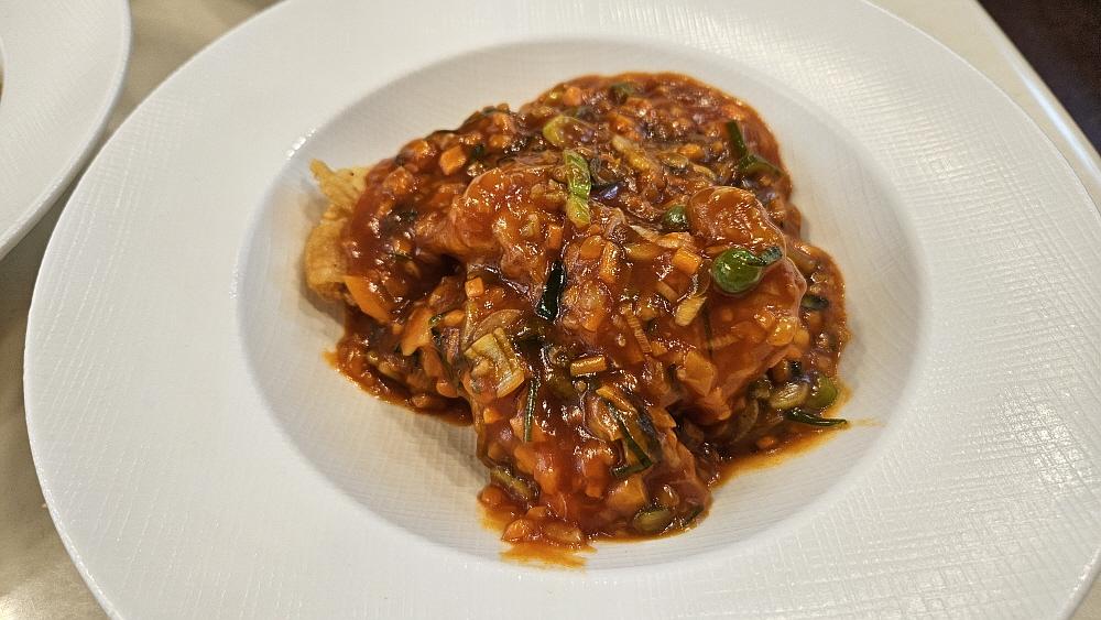 주방도 여러명이 일하는지 음식들이 빨리 나오는 편이었다. 주문하고 잠깐 앉아있는데 벌써 첫번째 음식인 유산슬이 나왔다. 첫 입의 느낌은 "와 맛있다!" 였다. 정말 제대로 된 중국 요리의 진수라 할 수 있었다. 뭔가 강한 향도 있었는데 나중에 알고보니 그것은 생강이었다. 그런데 적당한 기름기와 함께 참 조화가 잘 맛이었다. 이런 것이 중국집 맞지~ 중국 음식은 일단 볶고, 튀긴다고 알려져 있다. 맞는 말이다. 하지만 만드는 사람의 기술에 따라 담백한 맛이 난다. 아마도 불과 시간, 물과 양념의 절묘한 조화가 만들어내는 입안의 유희라 할 수 있다. 이날의 유산슬은 그런 느낌이었다.