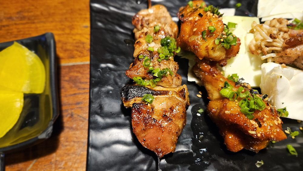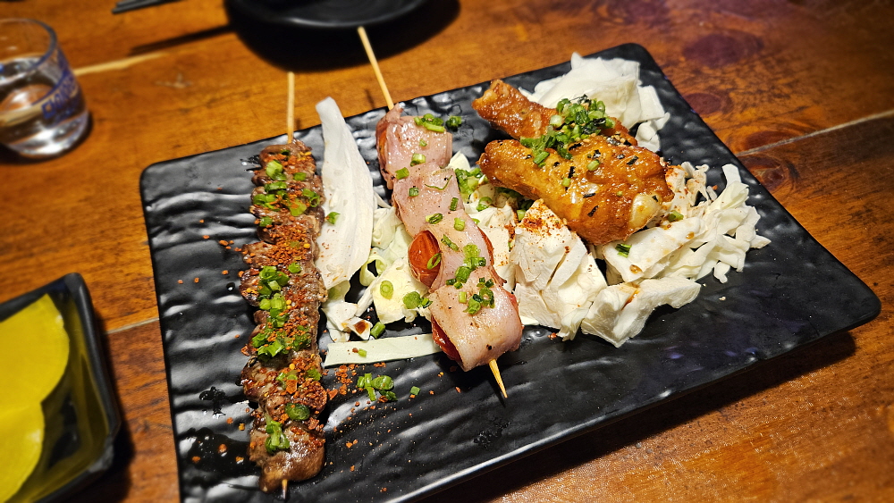 가게 안의 분위기는 최대한 일본풍에 가깝게 만든 것 같았다. 이자카야라는 일본식 주점의 분위기가 물씬했다. 우리가 첫 손님이었다. 이자카야의 좋은 점은 적은 양의 안주를 여러 개 먹을 수 있다는 것이다. 그리고 가장 좋아하는 이자카야 안주 중에 하나가 바로 꼬치구이이기 때문에 더욱 맘에 들었다. 원래 첫 주문은 세트를 선택해야 한다는데 우리가 첫 손님이라 그냥 단품 주문도 받아 주었다. 사실 우리는 1차로 거한 낙곱새를 먹었기 때문에 여기서는 안주를 자제해야 했다. 정통 일본식으로 포렴이 걸린 것은 아니었지만 그래도 술맛이 날 것 같은 편안하고, 낭만적인 분위기였다.