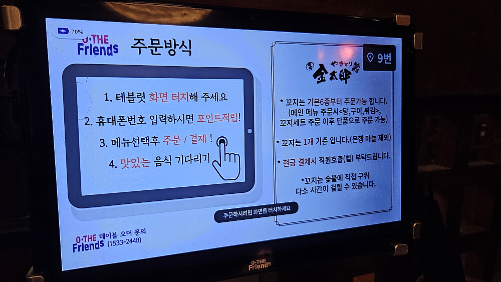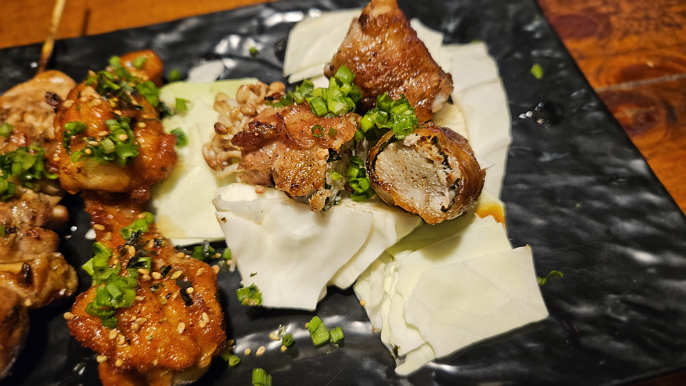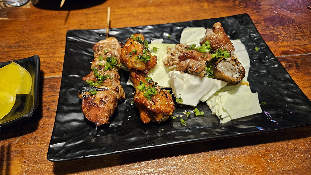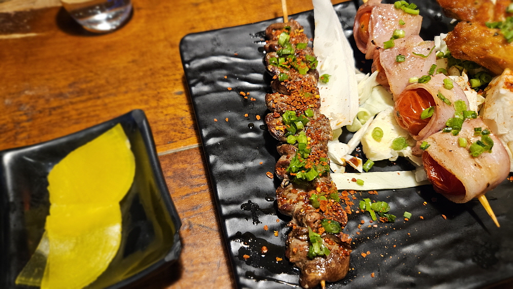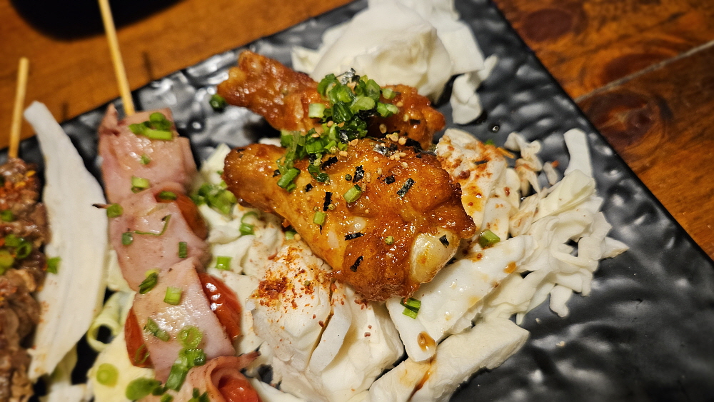 가게 안의 분위기는 최대한 일본풍에 가깝게 만든 것 같았다. 이자카야라는 일본식 주점의 분위기가 물씬했다. 우리가 첫 손님이었다. 이자카야의 좋은 점은 적은 양의 안주를 여러 개 먹을 수 있다는 것이다. 그리고 가장 좋아하는 이자카야 안주 중에 하나가 바로 꼬치구이이기 때문에 더욱 맘에 들었다. 원래 첫 주문은 세트를 선택해야 한다는데 우리가 첫 손님이라 그냥 단품 주문도 받아 주었다. 사실 우리는 1차로 거한 낙곱새를 먹었기 때문에 여기서는 안주를 자제해야 했다. 정통 일본식으로 포렴이 걸린 것은 아니었지만 그래도 술맛이 날 것 같은 편안하고, 낭만적인 분위기였다.
