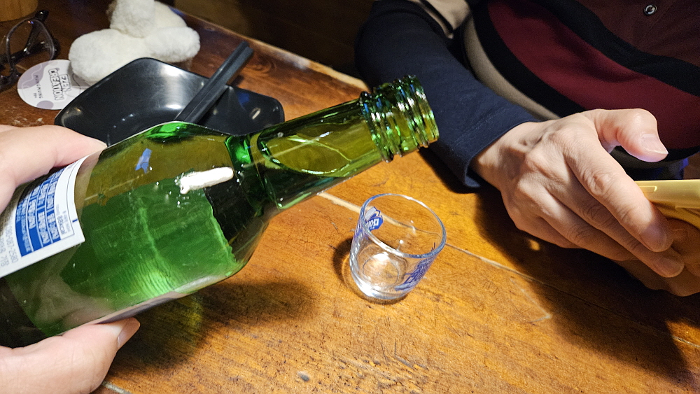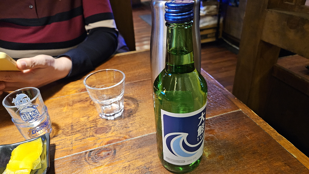 현지에 왔으면 현지의 소주를 마셔야 한다. 여기는 대선이라는 소주가 현지 술이라 했다. 요즘 소주들이 너무 도수가 낮아져서 한 두 병을 먹어서는 감이 잘 오지 않는다. 알콜 도수 16% 내외의 술이라면 청주랑 비슷하고, 와인과도 비슷한 도수라 하겠다. 예전 소주가 25%의 높은 알콜 함량을 가졌을 때와 비교하면 아무래도 이건 정말 물을 많이 탄 소주라 하겠다. 그래서 주량이 가늠이 안 되어 오히려 더 과음을 하게 된다. 안 취한 것 같다가 갑자기 몰려 오는 취기가 무섭기도 하다. 아무튼 전작이 있었지만 여기서도 두 어 병의 소주를 마신 것 같다. 술값도 예전보다 확실히 많이 드는 것 같다.
