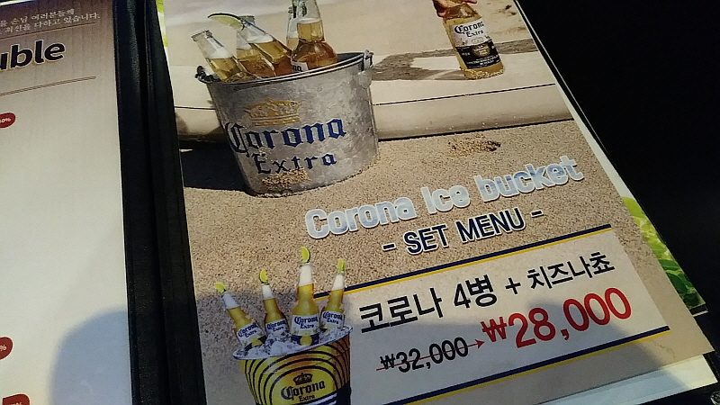 민락동을 자주 나왔더니 이젠 그 거리가 눈에 들어 온다. 이집은 상대적으로 한가한 구역에 있다. 물론 이 일대가 엄청 큰 먹자골목이긴 하지만 그래도 너무 사람들로 붐비는 곳보다 이런 곳이 더 낫다. 맥주집들이 대부분 그렇듯이 여기도 이국적인 인테리어가 눈에 띄였다. 마치 서양의 팝 같은 그런 분위기? 가 보지도 못했는데 그걸 어떻게 알지? 아무튼 이런 분위기 나름 좋아한다. 치즈나쵸를 함께 준다는 말에 눈이 번쩍해서 코로나 맥주를 주문했고, 칭다오가 좋다는 제수씨는 그 맥주로 주문했다.
