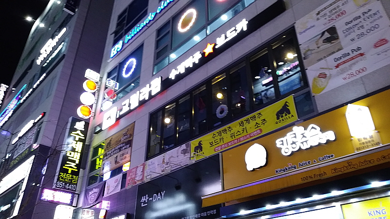 저녁을 거하게 조개찜으로 먹고 우리는 아쉬움을 달래기 위해 맥주집을 찾아 나섰다. 함께 간 동생 말로는 여길 전에 왔었다는데 전혀 기억이 없다. 그렇게까지 취하지는 않았을텐데 아마 다른 뭔가 심각하게 집중해야 했던 일이 있었을 것이다. 대부분의 호프집들은 내가 분위기를 기억하기 마련이다. 아무튼 그래서 다시 찾아 가기로 했다. 이름하여 세계 맥주를 판다는 고릴라 라는 호프집이었다. 우리는 맥주를 술로 그냥 다른 안주와 함께 마시지만 외국에선 음료처럼 안주없이 맥주만 마시기 때문에 그렇게 다양한 맛을 내는 맥주들이 있다는 말을 들은 적이 있다. 그래서인지 나 역시 요즘엔 우리 맥주보다 세계맥주를 판다는 집이 더 끌린다.