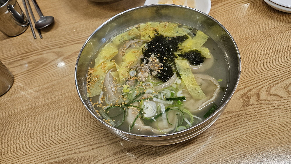 시장냉면 중에서도 비빔냉면은 비슷한 사촌격인 비빔국수나 쫄면과 식감이 크게 다르지 않다. 이날 비빔냉면의 맛도 그랬다. 삶은 계란 반쪽이 고명으로 중심을 잡고, 양배추가 듬뿍 들어가 정통 냉면과는 다른 길을 가는 면이란 것을 한 번에 알 수 있었다. 면은 물론 공장에서 만들어 파는 것이지만 부드럽고, 쫄깃한 맛이 괜찮았다. 달달하면서 매콤한 양념이 식감을 자극하는 아주 맛난 냉면이었다. 만두국도 공장 만두를 넣어 만든 것이고, 국물도 특별히 직접 뭔가를 끓여 낸 것이라 하긴 어렵지만 만두와 잘 맞았다. 가성비 좋은 음식을 먹게 되면 아무래도 뭐든 너그러워진다.
