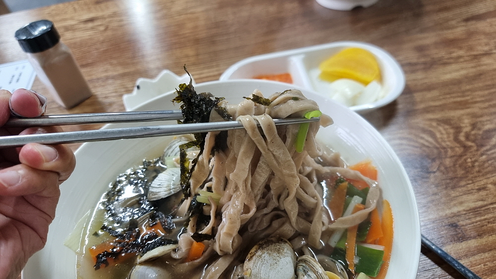 면 자체가 심심한 편이다 보니 깍뚜기나 김치, 단무지를 많이 집어 먹게 된다. 그래도 국물이 진하고 강한 편이라 면을 먹기에 좋았다. 손님이 없는 것 같으면서도 꾸준히 들어 온다. 하긴 여기도 식당 문 연지 꽤 된 곳이다. 나름의 단골들도 있을 것이다. 동죽이라는 조개가 확실히 바지락과는 식감이 많이 달랐다. 개인적으로는 바지락이 더 좋긴 한데 둘다 해감을 잘해야 한다. 가격이 다소 비싼 편인데 아마도 메밀가격 때문에 그런 것 같았다. 메밀이 몸에 좋다는 것은 많이 알려진 사실이다. 다시 예전의 가격으로 돌아 갈 수 있을까? 그것만 빼면 전체적으로 무난하고 좋은 한 끼였다.