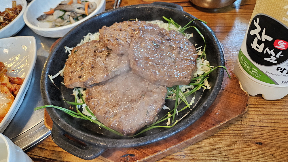 별 기대를 하지 않고 먹었는데 떡갈비의 맛이 장난이 아니었다. 평소 돼지고기 떡갈비는 즐기는 아이템이 아님에도 꽤나 집어 먹었다. 그 정도로 훌륭했다. 어디나 있는 흔한 반찬인 것 같지만 이렇게 맛난 집에서 먹으면 느낌이 또 다르다. 생선구이의 가격도 많이 올랐는데 그래서인지 이날은 가자미와 고등어만 나왔다. 그래도 한 세 종류 정도는 나올줄 알았는데 조금 아쉬웠다. 하긴 그래도 큼직하니 큰 생선을 잘 구워서 반찬으로 먹기에 부족함은 없었다. 이런 맛에 백반을 먹는 것 아니겠는가... 다양한 반찬을 맛나게 배부르게 푸짐하게 먹는다는 점 말이다.