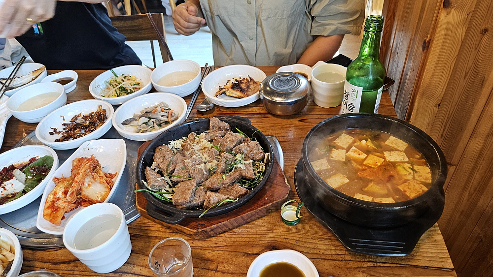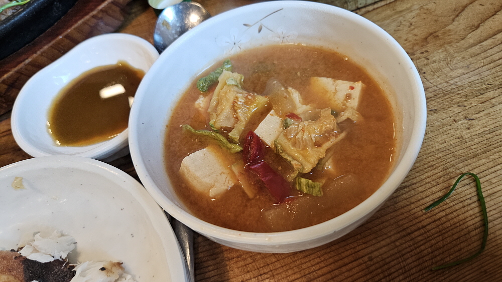 잘익은 된장찌개를 생선과 함께 먹는다면 이미 성공한 한 상이다. 파는 된장이 아니라 집된장의 투박하면서 건강한 맛이 그대로 전혀지는 이집의 된장찌개는 조금 늦게 등장했다. 주인공인 셈이다. 된장찌개와 생선 한 토막이면 다른 반찬이 필요없다고 할 수 있다. 참 건강하면서 즐거운 한 끼였다. 모두 함께 모여 밥을 먹으니 식구들이라도 된 것 같았다. 아트벨리 진입로에 다른 식당들도 가봤지만 이날 가본 이집이 진정한 밥집이 아닐까 한다. 가격도 합리적이고 말이다. 예전엔 여기서 고기에 술 한 잔도 했던 것 같다. 이렇게 이날의 점심도 맛나고 푸짐하게 잘 채워졌다.