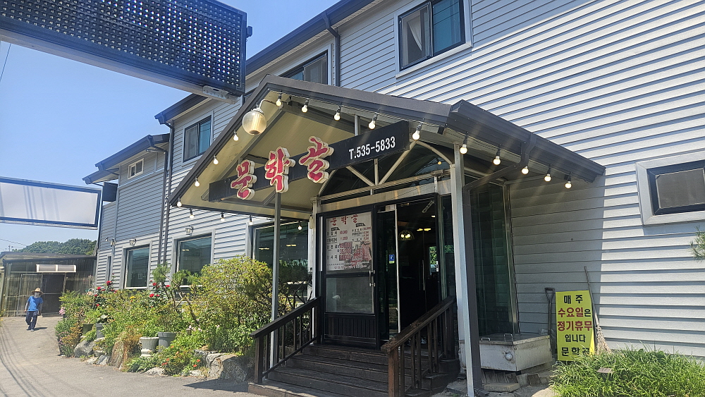 행사가 신북면의 아트벨리에서 있었기 때문에 근처에서 밥을 먹기로 했다. 아트벨리는 워낙 많은 방문객이 붐비는 곳이기 때문에 인근에 유명한 밥집이 꽤 있다. 우리가 선택한 곳은 신북면 사무소 근처의 문학골이라는 밥집이었다. 알아본 결과 여기는 생선구이 정식과 떡갈비 정식을 점심 메뉴로 주는데 두 가지를 섞어서 먹는 것도 가능하다고 했다. 여러 사람이 함께 가기 때문에 이런 다양한 구성은 참 맘에 드는 부분이다. 푸짐하게 여러 반찬을 섭렵한다는 것도 즐거운 일이다. 한낮의 뜨거운 태양을 피해 우리는 문학골로 찾아 들었다. 예약을 해 놓았기 때문에 우리 자리가 마련되어 있었다.