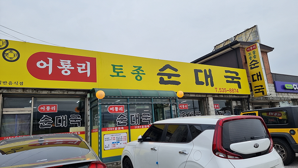 가게 이름은 어룡리 토종 순대국이다. 그런데 간판의 모양이나 색깔이 어디선가 많이 본듯한 집이었다. 가만히 살펴보니 무봉리 순대국의 간판과 아주 흡사한 모양이었다. 아마 처음 시작은 무봉리 순대국 간판으로 했을 수도 있겠다 싶었다. 나중에 독립적으로 자기 상호를 걸고 장사를 하는 것일 수 있다. 순대국이란 음식이 오랫동안 국물을 우려내는 방식으로 만들다 보니 처음엔 누군가의 도움을 받다가 나중엔 자신만의 레시피가 생길 수 있다. 식당 안에 들어가보니 역시나 무봉리 순대국의 구성과 많은 부분이 비슷했다. 순대국은 이런 맛이 있다. 손님이 스스로 어느 정도 맛을 조절할 수 있다는 것 말이다.