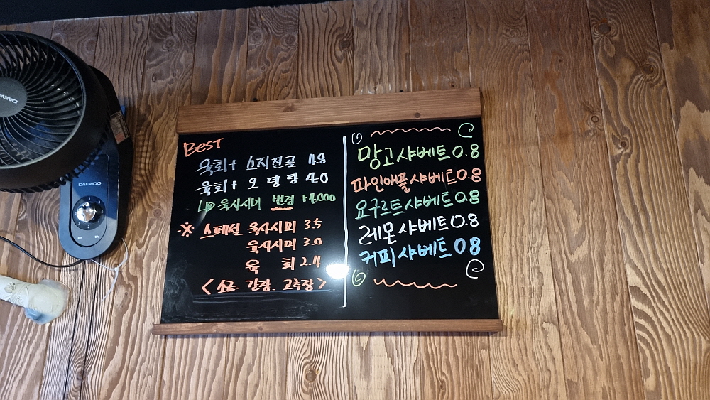 포천동 일대는 시가지 전체가 식당가라 해도 과언이 아니다. 오래 된 식당도 많고, 새로 생긴 유행타는 식당도 많다. 이날은 배부르지 않은 안주를 찾다가 이집을 발견했다. 포천동 사무소 근처에 새로 생긴 육회 집이었다. 원래도 이 자리는 주점인가가 있었다. 오래된 건물의 느낌이 물씬 나는 레토르 감성의 술집이라 하겠다. 하지만 육회라는 음식이 그렇게 가벼운 마음으로 먹을 수 있는 음식이라 하기엔 뭔가 무게감이 있는 것이 사실이다. 새로 생긴 집답게 들어가 앉으니 깔끔하고 산뜻한 실내 인테리어가 한눈에 들어 왔다.