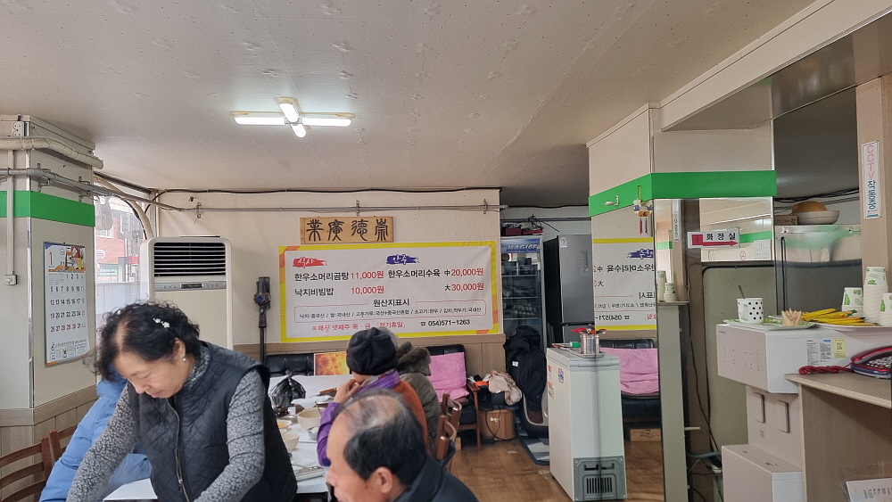 화도가는 고속도로로 이동하니 경북 문경까지 두 시간 밖에 안 걸렸다. 정말 좋아졌다. 운전을 덜 했다고는 하지만 아침부터 두 어시간 차 안에 앉아 오니 그래도 답답했다. 때도 되고 하여 출장장소로 바로 가지 않고, 근처 문경읍에서 점심을 먹기로 했다. 문경은 충주와 바로 가까운 곳이지만 분명히 경상북도이다. 그래서 여기도 가는 곳마다 경상도 사투리가 들린다. 사투리라는 것이 참 신기하다. 누가 가르쳐 주지 않아도 다들 이런 말투를 사용하니 말이다. 처음 우리는 소머리 국밥을 먹으려고 했다. 하지만 막상 식당 안에 들어가니 다른 옵션이 있었다.