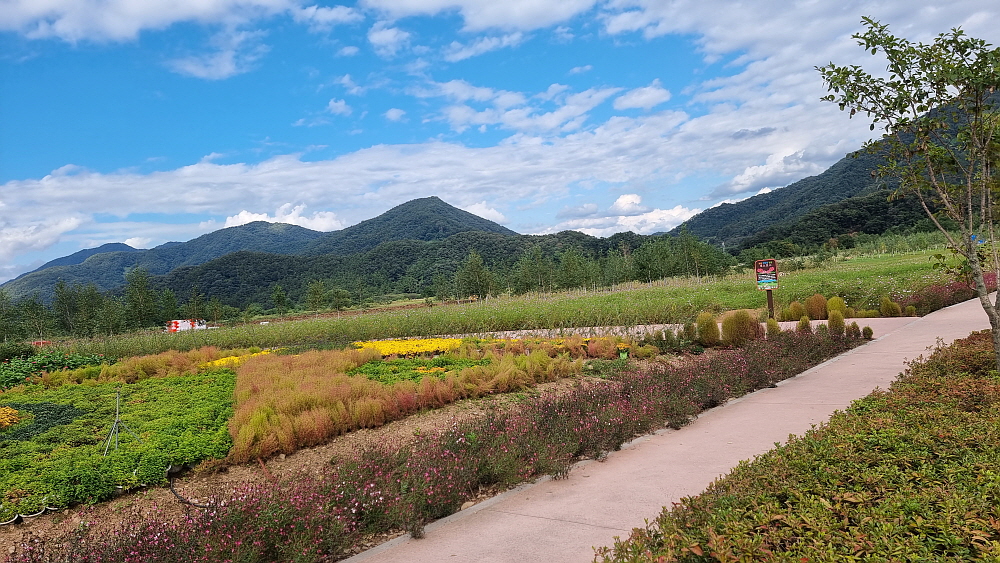 한탄강은 그 자체로 너무 아름다운 자연경관이기 때문에 이렇게 전망대를 만들어 있는 그대로 볼 수 있게 하는 것이 가장 현명한 방법이 아닐까 한다. 어떤 사람들은 이런 인공적인 구조물 말고 한탄강변에 조성된 꽃밭과 공원을 더 좋아하기도 한다. 가을에 피는 꽃이라는 다소 이색적인 컨셉의 꽃밭과 공원들은 평소 보지 못했던 새로운 경관을 선사한다.