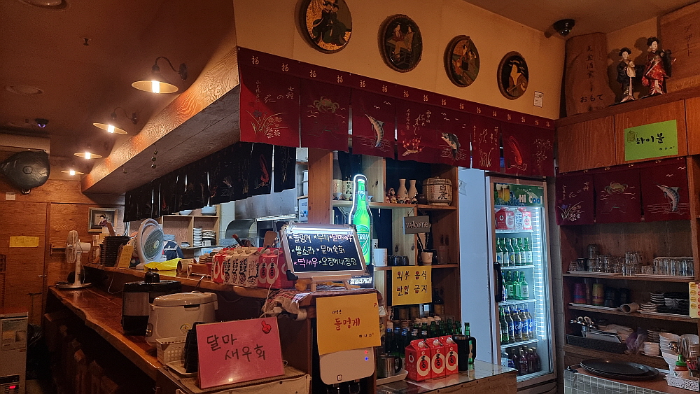 실내 인테리어는 과거와 비교하여 크게 바뀌지 않았다. 아기자기 하다는 표현이 맞는 그런 분위기이다. 테이블 수가 많지 않기 때문에 여럿이 회식하듯 가서 먹기엔 적당하지 않을 수 있다. 하지만 맘 맞는 몇 사람이 자연스러운 분위기에서 부담되지 않게 술 한 잔 하기에 이보다 더 나은 곳은 없을 듯 하다. 안주가 다양하다고 하지만 이젠 주인장이 혼자 주방이며 서빙을 모두 도맡아 하고 있기 때문에 예전보다 다양성은 좀 줄어 든 듯 하다. 하지만 아직도 대표 메뉴인 숙성회와 스시는 아주 좋은 상태이다.
