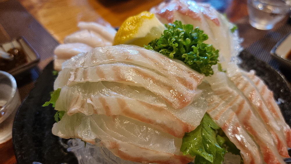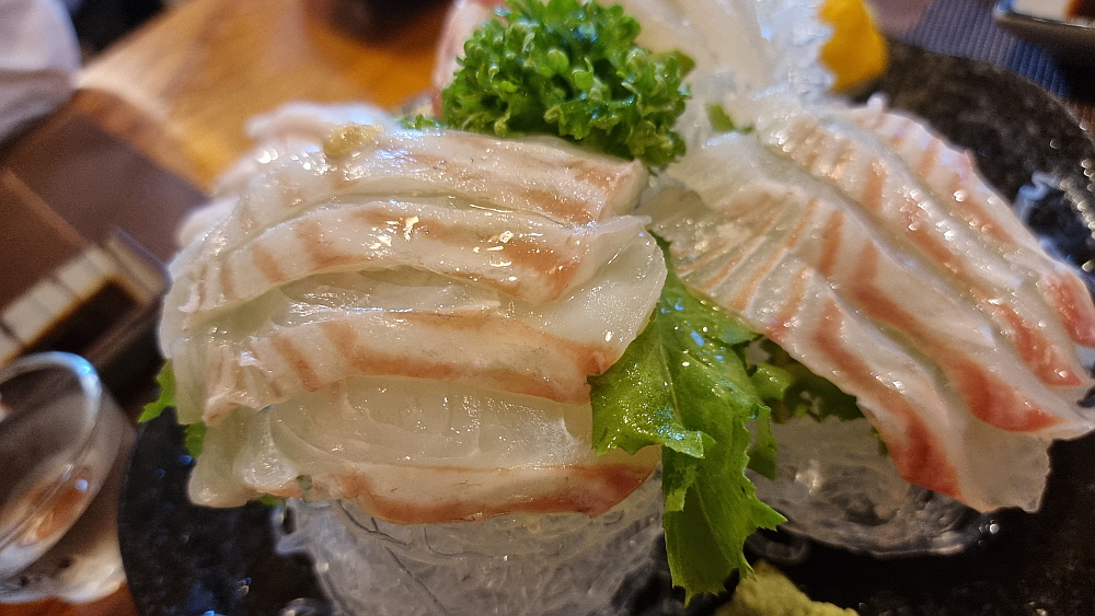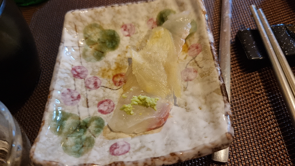 먼저 나온 광어회는 역시가 낮은 온도에서 숙성한 회였다. 제대로 잘 숙성한 생선회의 특징은 살이 단단하고, 겉에서 윤기가 돌면서 약간 단맛이 난다는 것이다. 일본 사람들은 거의 대부분의 회를 숙성해서 먹는다고 들었다. 숙성기간이 있기 때문에 잡자 마자 회떠서 먹는 생선회 보다는 아무래도 더 고급으로 취급받는다. 물론 숙성을 제대로 했을 때의 말이다. 그렇지 못하면 바로 잡아서 회를 떠서 먹는 것이 더 낫다. 이집의 광어 숙성회는 16점 정도 나오는데 3만원이다. 저렴한 가격은 아니지만 이렇게 맛있는 숙성회를 먹는 가격으로는 합리적인 편이라 하겠다.