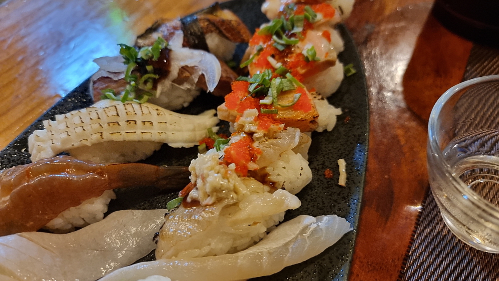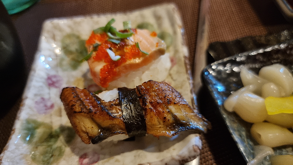 이날은 그렇게나 먹고 싶었던 장어구이, 즉 우나기 스시도 있었다. 우나기는 워낙 일본 사람들이 좋아하는 먹거리이자 안주라 어디가나 우나기 굽는 냄새가 진동하지만 우리는 솔직히 쉽게 만나기 어려운 안주이다. 바로 구워서 밥위에 올리면 좋겠지만 이렇게라도 만나니 어찌나 반갑던지... 다양한 종류의 스시를 먹는 것은 다채로운 요리를 먹는 것처럼 아주 즐겁고, 입이 호강하는 기회라 하겠다. 자리가 다소 좁은 탓에 오랫동안 앉아서 먹는 것이 좀 불편한 점도 있지만 이렇게 맛난 안주와 함께 먹으니 술맛이 아주 그만이다. 이런 맛에 미식가들은 온갖 불편을 감수하고서라도 좋은 식당을 찾아 다니는 것이겠지...
