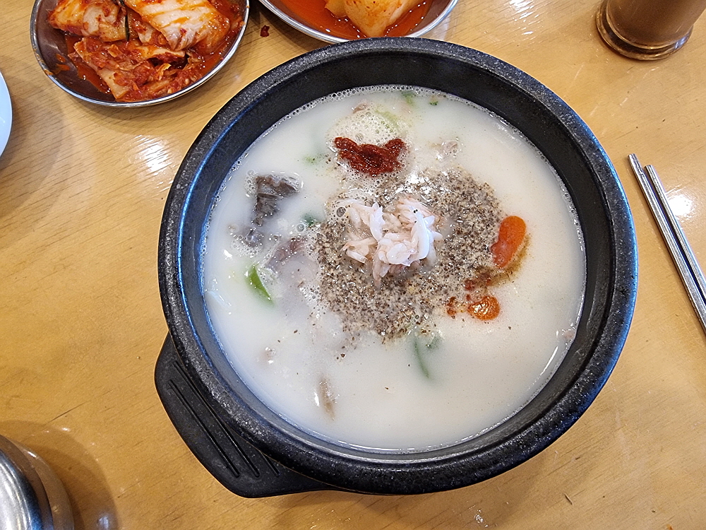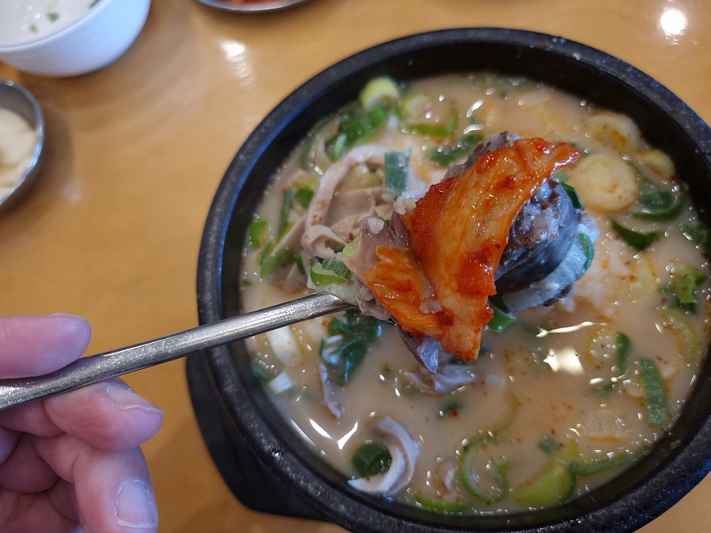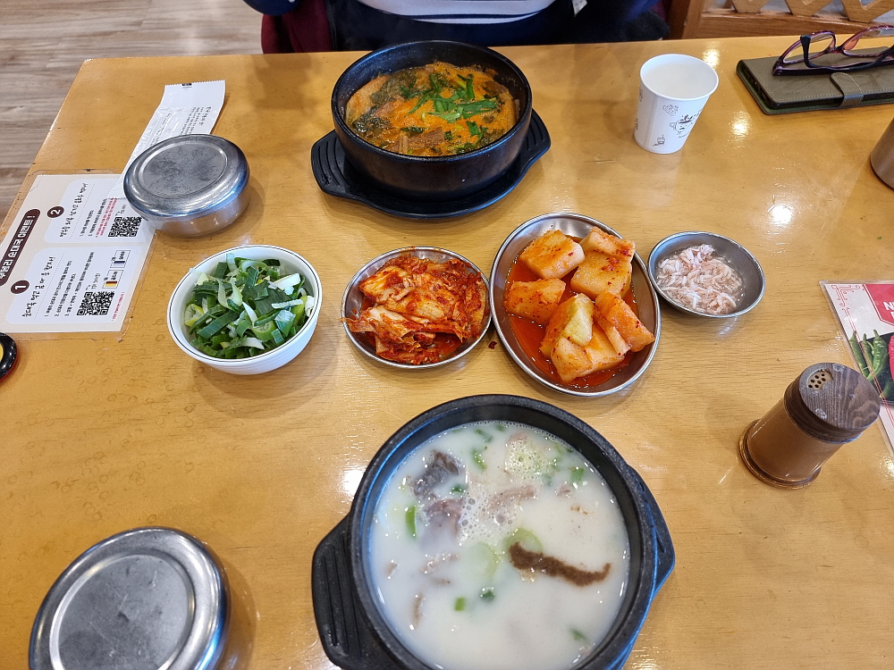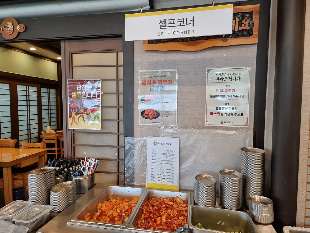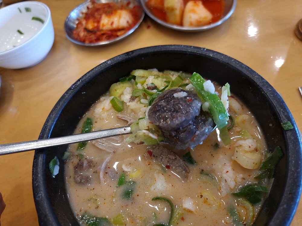 어느날인가부터 여기도 인건비를 줄이기 위해 셀프코너가 생겼다. 예전엔 종업원들이 가져다 주던 반찬들을 이젠 손님들이 직접 떠 와야 한다. 물론 이런 방식이 더 낫다는 사람들도 있다. 반찬을 자꾸 추가하는 것이 눈치 보였던 사람들은 이렇게 부담없이 직접 가지고 오는 것을 선호할 수 있다. 시대가 흐르면서 순대국 외에 이날 주문한 내장탕도 메뉴에 들어갔다. 가격이 13,000원이라 조금 부담스럽긴 했지만 맛은 훌륭했다. 장사가 잘 되는 순대국집들은 새우젓을 보면 알 수 있다고 했다. 신선하고, 품질이 좋은 새우젓이 있으면 장사가 잘 되고 회전이 잘 되는 집이라는 것이다.