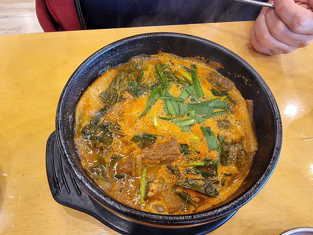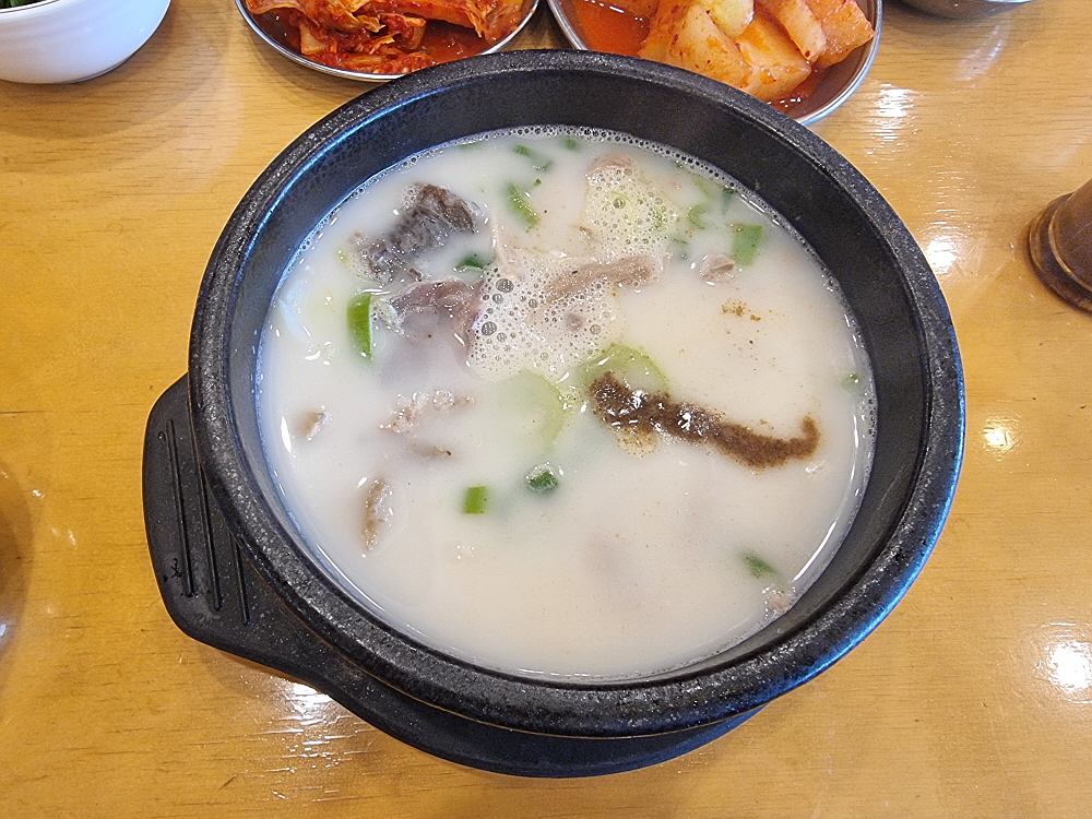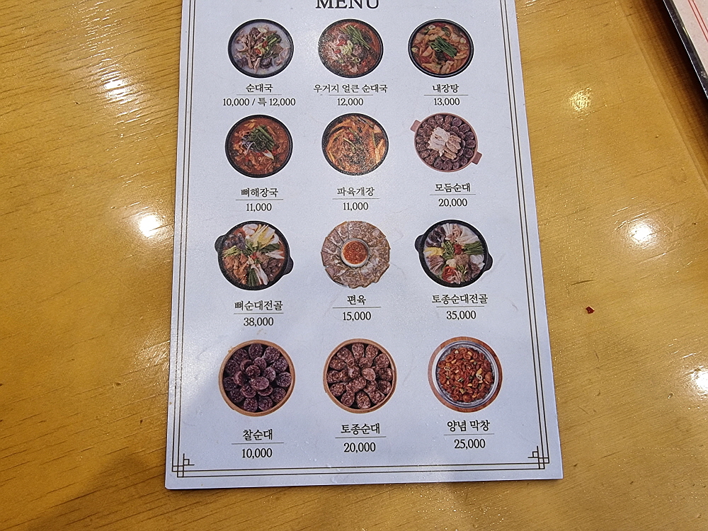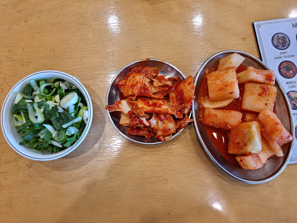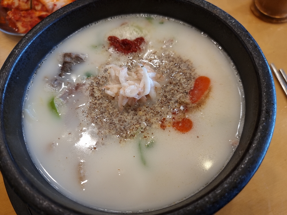 어느날인가부터 여기도 인건비를 줄이기 위해 셀프코너가 생겼다. 예전엔 종업원들이 가져다 주던 반찬들을 이젠 손님들이 직접 떠 와야 한다. 물론 이런 방식이 더 낫다는 사람들도 있다. 반찬을 자꾸 추가하는 것이 눈치 보였던 사람들은 이렇게 부담없이 직접 가지고 오는 것을 선호할 수 있다. 시대가 흐르면서 순대국 외에 이날 주문한 내장탕도 메뉴에 들어갔다. 가격이 13,000원이라 조금 부담스럽긴 했지만 맛은 훌륭했다. 장사가 잘 되는 순대국집들은 새우젓을 보면 알 수 있다고 했다. 신선하고, 품질이 좋은 새우젓이 있으면 장사가 잘 되고 회전이 잘 되는 집이라는 것이다.