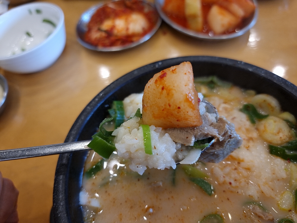김치와 깍뚜기를 맘껏 가져다 먹을 수 있으니 이것도 부담이 없다. 이젠 이렇게 한 그릇의 순대국보다 세트 메뉴로 먹는 손님들이 더 많은 것 같았다. 수육이 나오는 고급진 버전이 생긴 것이다. 손님의 70% 정도는 아재들이라 양을 더 추가한 것 같다. 오전 내내 허기졌던 배를 채우고 다시 오후에 열심히 일하는 것이다. 진정한 휴식이자 채움의 시간이다. 다른 어떤 음식들보다 순대국을 먹으면 저녁 때까지도 속이 든든하다는 생각이 든다. 맛도 좋고, 속도 편하고, 가격도 괜찮고 참 이런 서민적인 음식이 또 있을까? 참 맛나고 즐거운 식사시간이다.