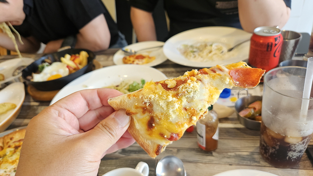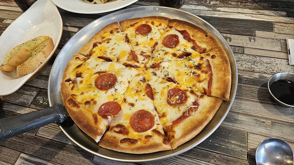 그래도 이집은 오일 파스타가 수준급이었다. 행운을 얻은 날이라 해야겠다. 마늘이 풍성하게 들어간 파스타로 오일의 풍미를 제대로 살려 놓았다. 함께 나온 마늘빵은 소소 였지만 피자는 아주 훌륭했다. 피자 만큼은 전문점 이상이었다. 다른 어느 메뉴보다 좋았다. 여긴 피자집이라 해도 될 것 같다. 그냥 피자만 두 어 판 먹으면 만족도가 높을 것 같은 느낌이었다. 도우도 맛나고 치즈도 듬뿍 들어간 것이 아주 만족스러웠다. 우리가 주문한 페퍼로니 피자만 그렇지는 않겠지... 다음에 기회가 된다면 다른 피자도 꼭 먹어보고 싶다. 오일파스타와 피자에서는 아주 만족스러웠다.