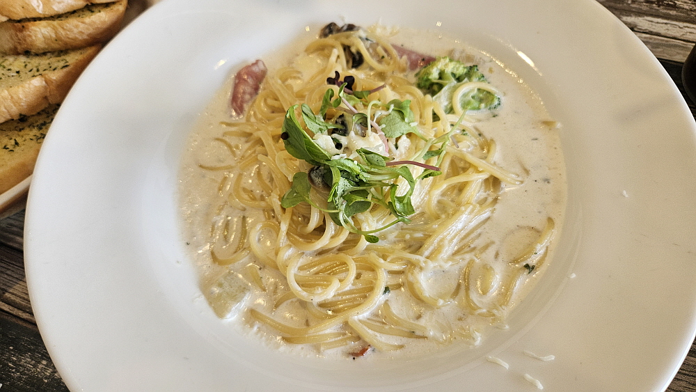 포천동 전화국 앞에 있는데 주차장이 따로 있는 것은 아니지만 휴일 근처는 한가한 편이었다. 우리는 네 명이니까 치오세트를 주문했다. 그러다 좀 부족하다 싶으면 단품으로 한 개를 더 주문할 생각이었다. 샐러드와 파스타 또는 라이스 중에 고르고, 스테이크와 피자 그리고 음료도 3잔이나 나온다. 처음 생각과 달리 막상 음식을 받고 보니 적은 양이 아니었다. 가성비는 그 어느 집보다 훌륭한 곳이다. 파스타는 알리오 올리오와 베이커 크림 파스타로 골랐고, 스테이크도 골랐다. 미리 주문해야 가자마자 먹을 수 있을 것 같아 그렇게 한 것인데 굳이 미리 주문하지 않아도 빨리 나오는 편인거 같았다.